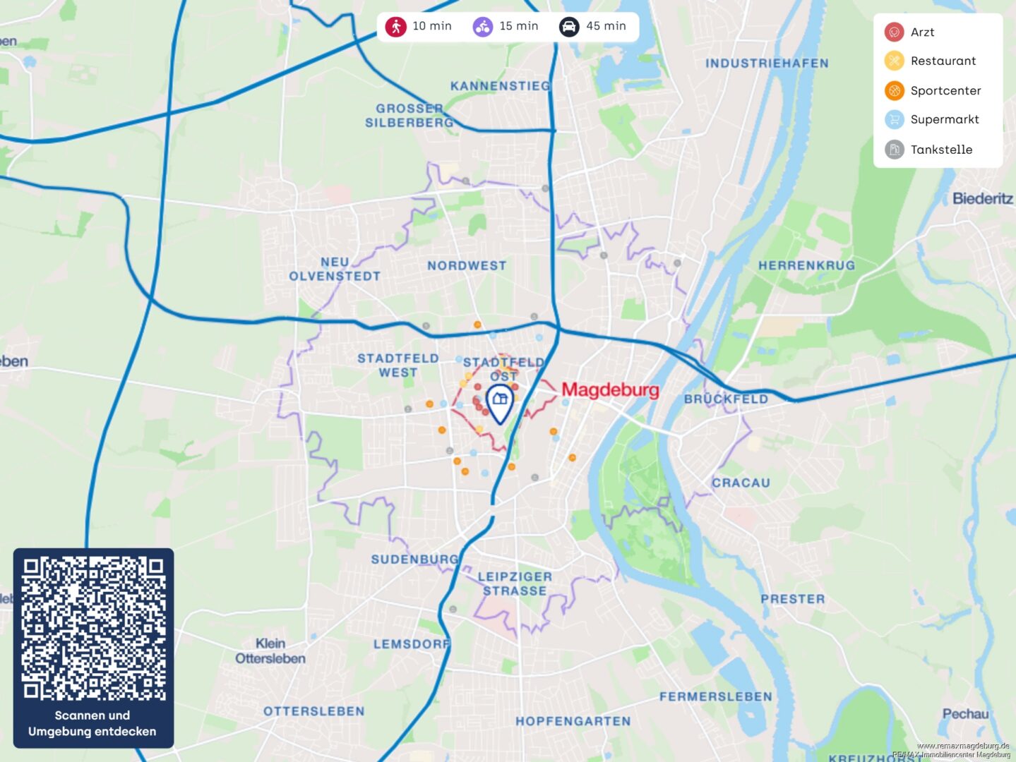 Die Lage in Stadtfeld Ost zählt zu den gefragtesten Wohnlagen von Magdeburg. Einkaufsmöglichkeiten, öffentliche Verkehrsmittel, Ärzte, Schulen sowie Cafés und Grünflächen befinden sich in unmittelbarer Nähe. Die Innenstadt ist in kurzer Zeit erreichbar, was die Wohnung sowohl für Selbstnutzer als auch für Mieter besonders attraktiv macht.