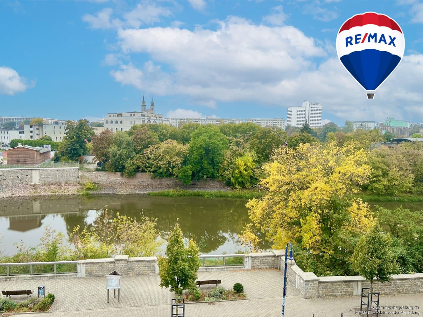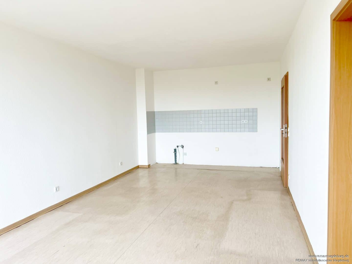 Das Wohnzimmer mit offener Küche ist großzügig geschnitten und sehr hell. Ein echtes Highlight ist der Zugang zum Balkon, von dem Sie einen fantastischen Blick auf die Elbe genießen – ideal zum Abschalten, Durchatmen und Entspannen.