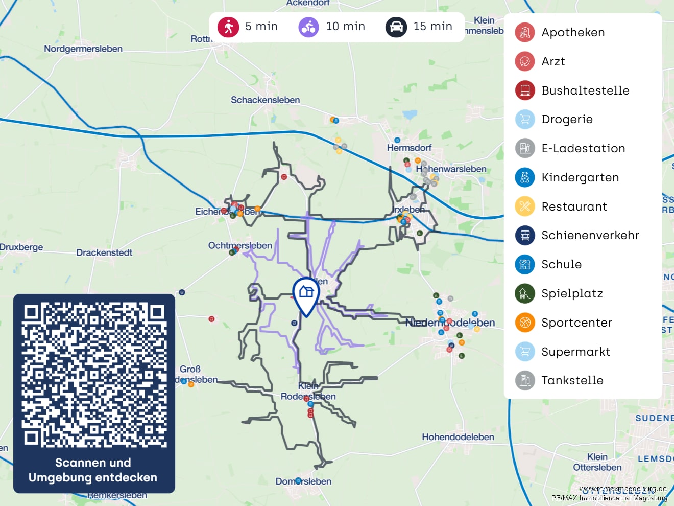 Die naturnahe, ruhige Umgebung bietet Ihnen ein Höchstmaß an Erholung und Lebensqualität. Gleichzeitig profitieren Sie von einer hervorragenden Infrastruktur mit kurzen Wegen zu Einkaufsmöglichkeiten, Schulen und Kindergärten. Dank der Nähe zum Kleinbahnhof Wellen erreichen Sie Magdeburg und weitere Städte schnell und bequem. Zudem sorgt die ausgezeichnete Anbindung an Bundesstraßen, sowie die Autobahn für optimale Erreichbarkeit des Umlands.