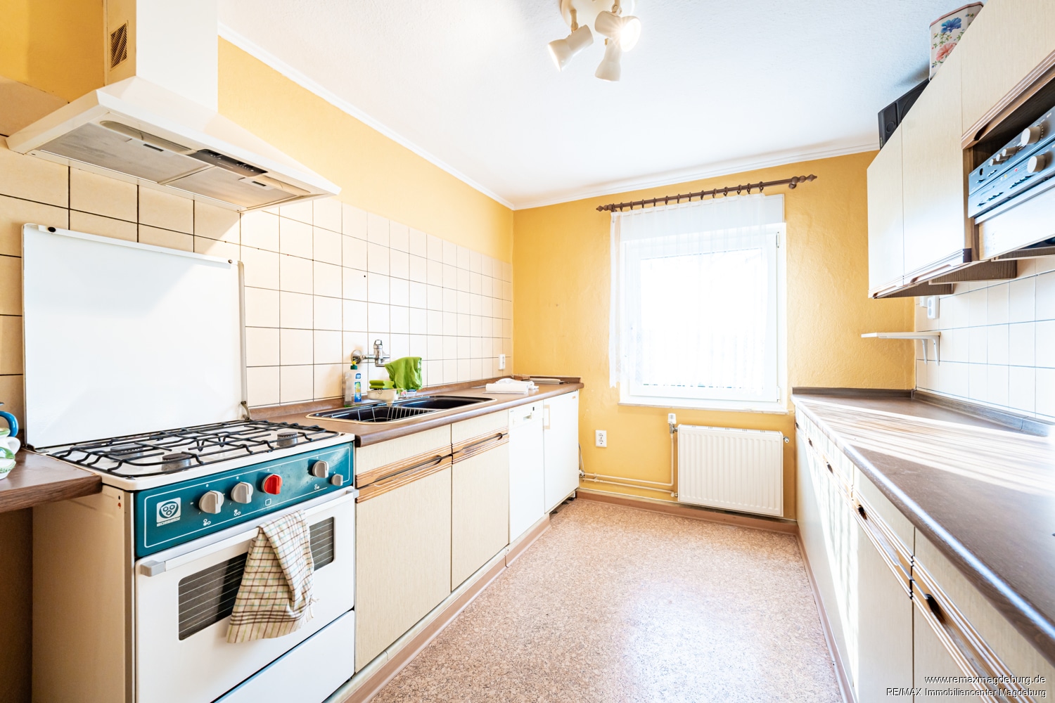 Die Küche ist mit einer Einbauküche ausgestattet.