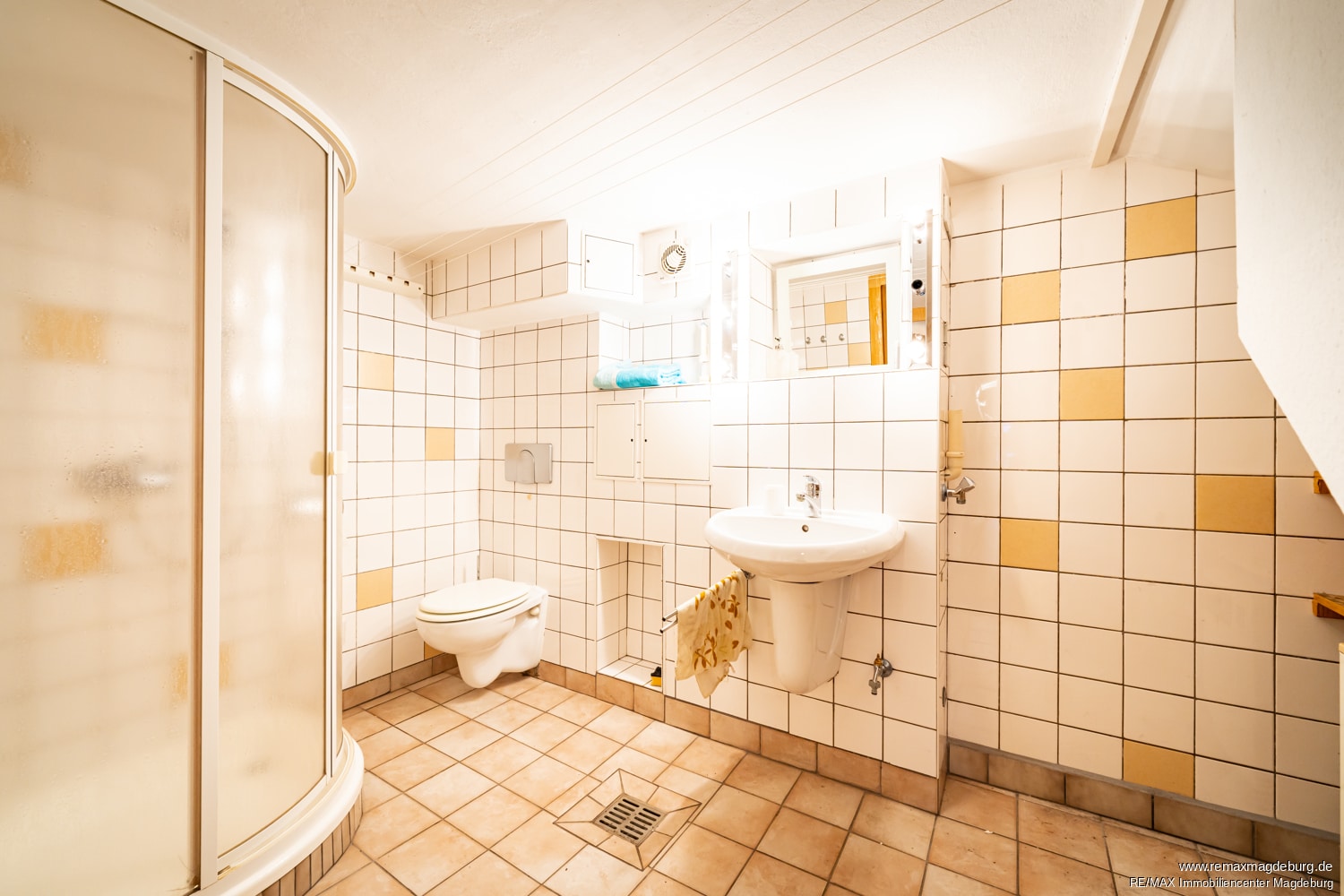 - Badezimmer mit Dusche und Waschmaschinenanschluss,