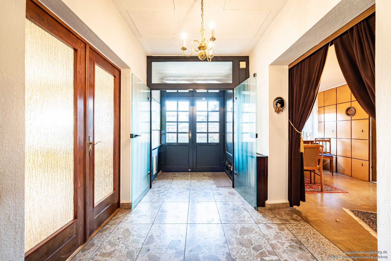 Betreten Sie das Haus durch den einladenden Windfang, der Ihnen den Weg in die großzügige Diele im Erdgeschoss weist.
