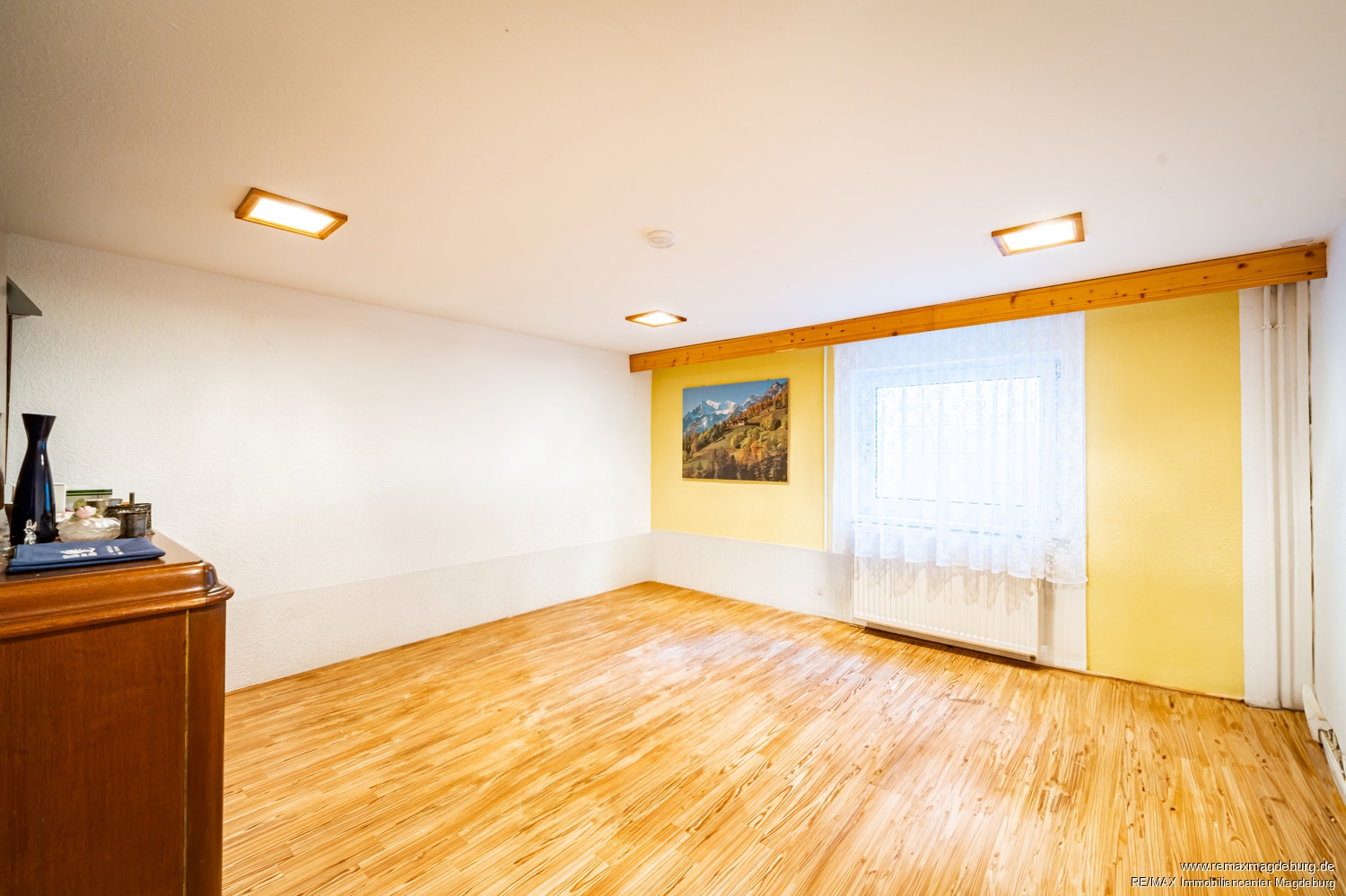 Durch den Anbau, welcher im Jahr 1981/1982 errichtet wurde, ist ein großes Wohnzimmer und ein geräumiges Schlafzimmer geschaffen worden. Die großen Fenster sorgen für ausreichend Tageslicht und schaffen eine angenehme Atmosphäre.