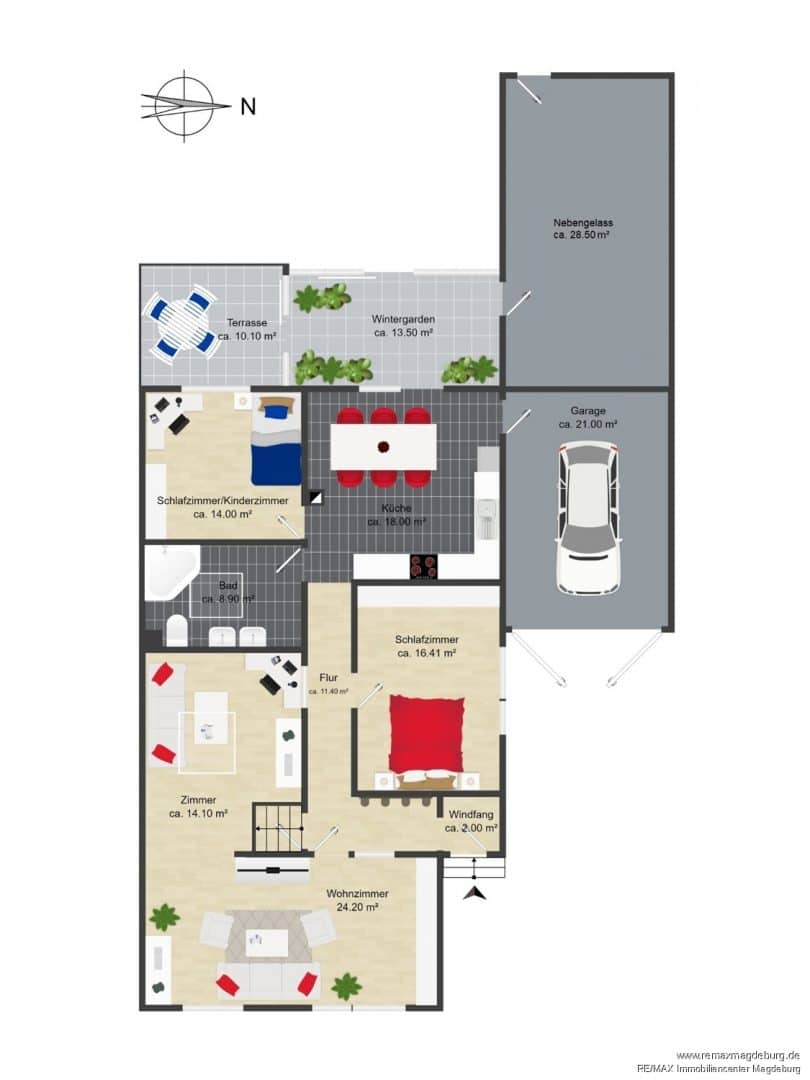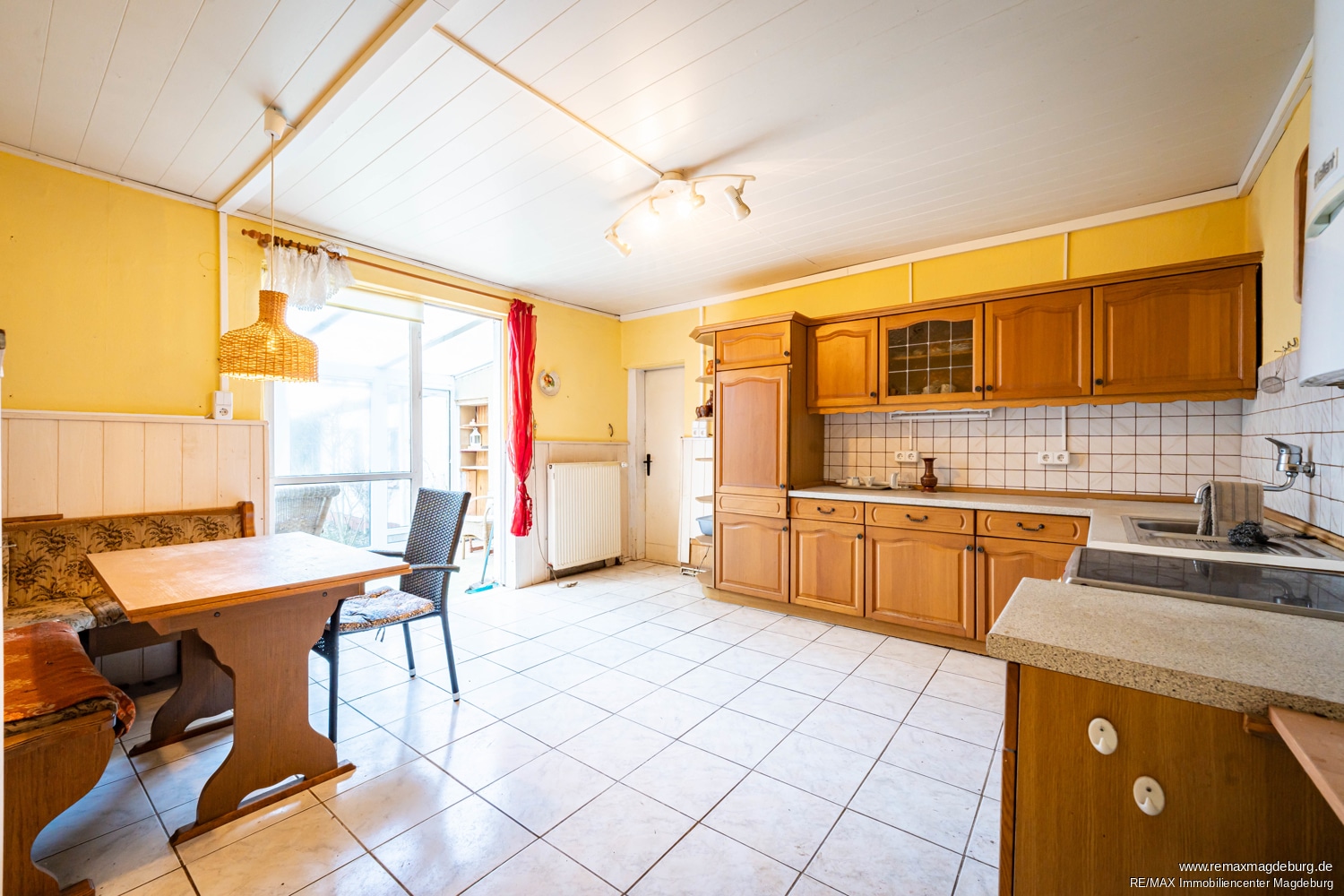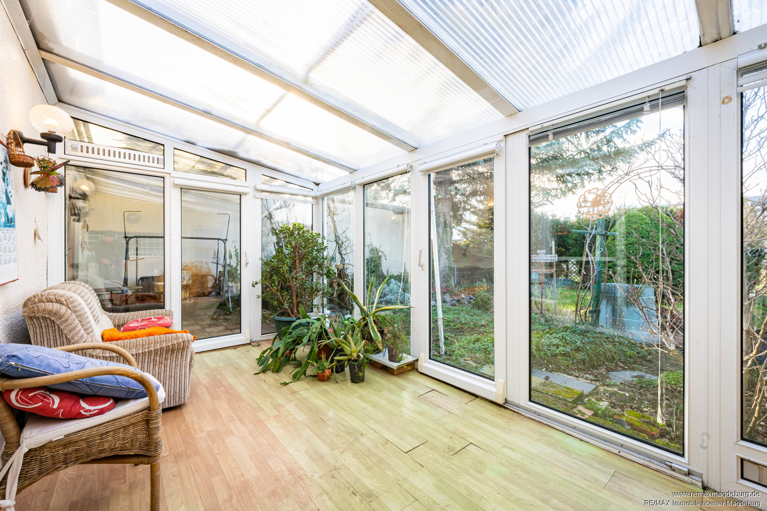Der Wintergarten, welcher ebenfalls von der Küche begehbar ist, bietet einen wunderbaren Blick in den großen, grünen Garten. Für genügend Stauraum ist durch die Teilunterkellerung gesorgt.