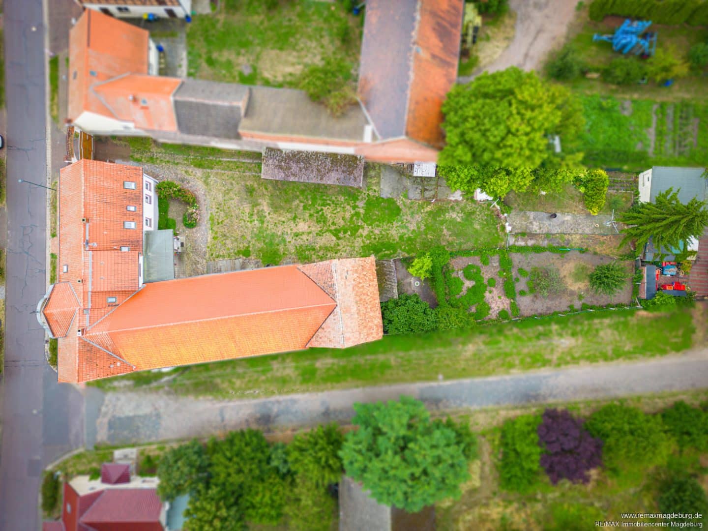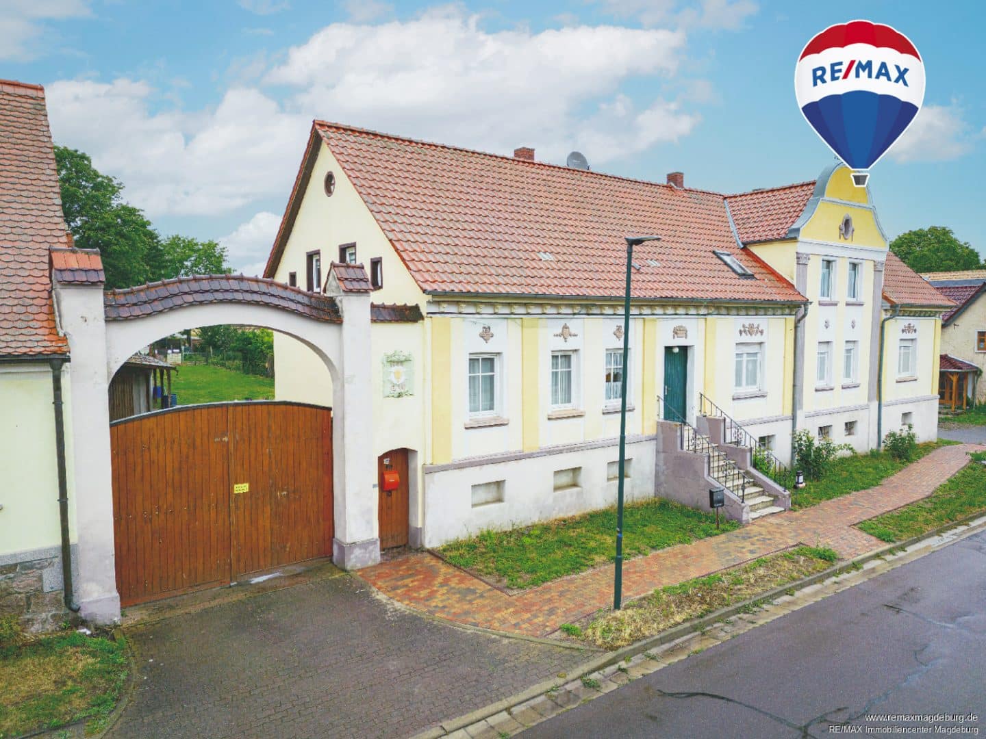 Auch die Außenanlage bietet ein hohes Maß an Nutzwert und Flexibilität. Eine große Scheune schafft zusätzlichen Stauraum für Fahrräder, Gartengeräte oder saisonale Gegenstände. Carports sorgen für witterungsgeschütztes Parken, während weitere Stellplätze direkt im Innenhof zur Verfügung stehen. Die Einfahrt erfolgt über ein massives Holztor, das den Zugang zum weitläufigen Hinterhof ermöglicht. Von hier aus gelangt man auch in den gemeinschaftlich nutzbaren Garten – ein ruhiger Rückzugsort für gesellige Stunden im Grünen oder individuelle Entfaltungsmöglichkeiten.