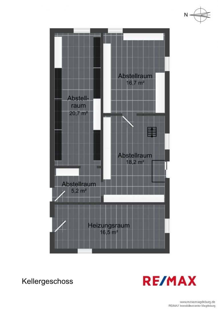Ergänzt wird das Raumangebot durch das Kellergeschoss, das funktionalen Stauraum bereitstellt. Hier befinden sich vier Abstellräume, die sich ideal für Lagerzwecke eignen – sei es durch die einzelnen Mieter oder gemeinschaftlich. Ein zentraler Heizungsraum komplettiert das Untergeschoss.