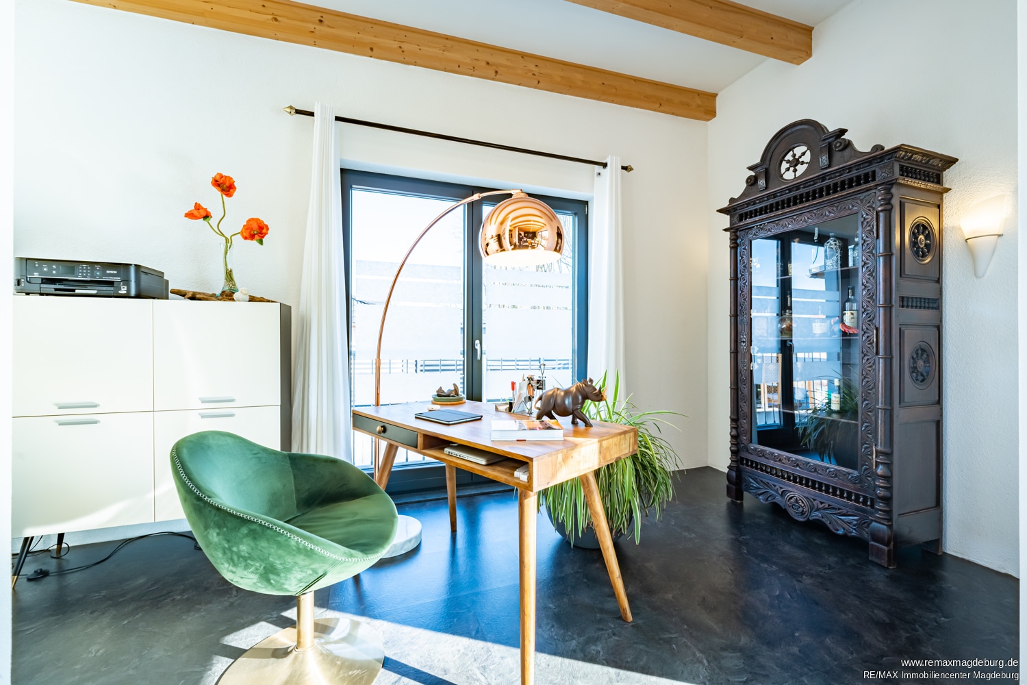 Ein Arbeitsbereich, der geschickt an das Wohnzimmer angrenzt, bietet einen ruhigen Rückzugsort, ideal zum Arbeiten oder für private Momente. Diese flexible Zone lässt sich perfekt an Ihre Bedürfnisse anpassen und schafft eine harmonische Balance zwischen dem offenen Wohnbereich und einem konzentrierten Arbeitsumfeld.