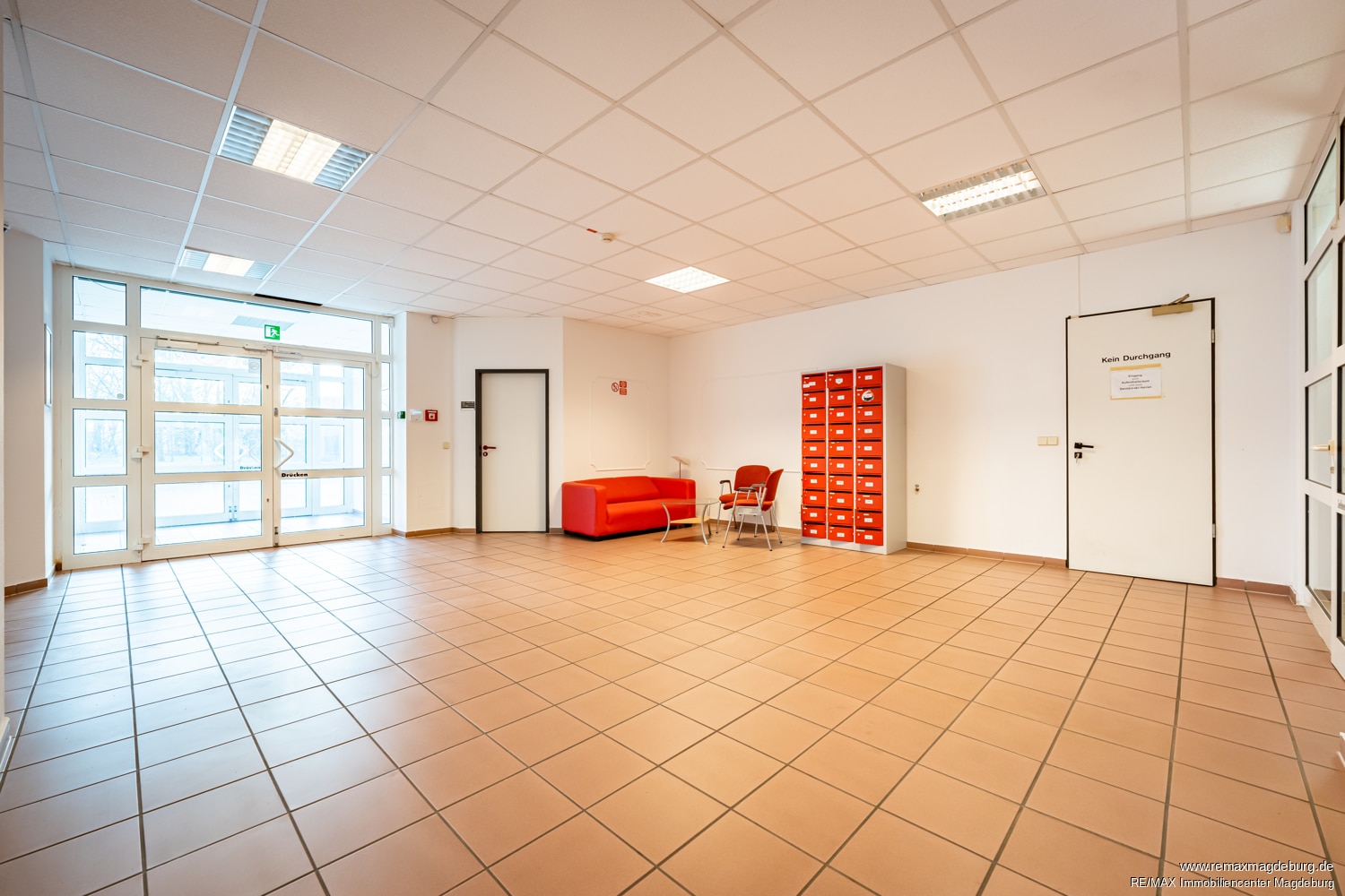 Diese leistungsstarke Logistikimmobilie präsentiert sich als optimaler Standort für Distribution und Spedition. Bereits der helle, repräsentative Eingangs- und Empfangsbereich sorgt für einen professionellen ersten Eindruck bei Kunden, Fahrern und Geschäftspartnern. Von hier aus sind Verwaltung und operative Flächen klar strukturiert erreichbar.