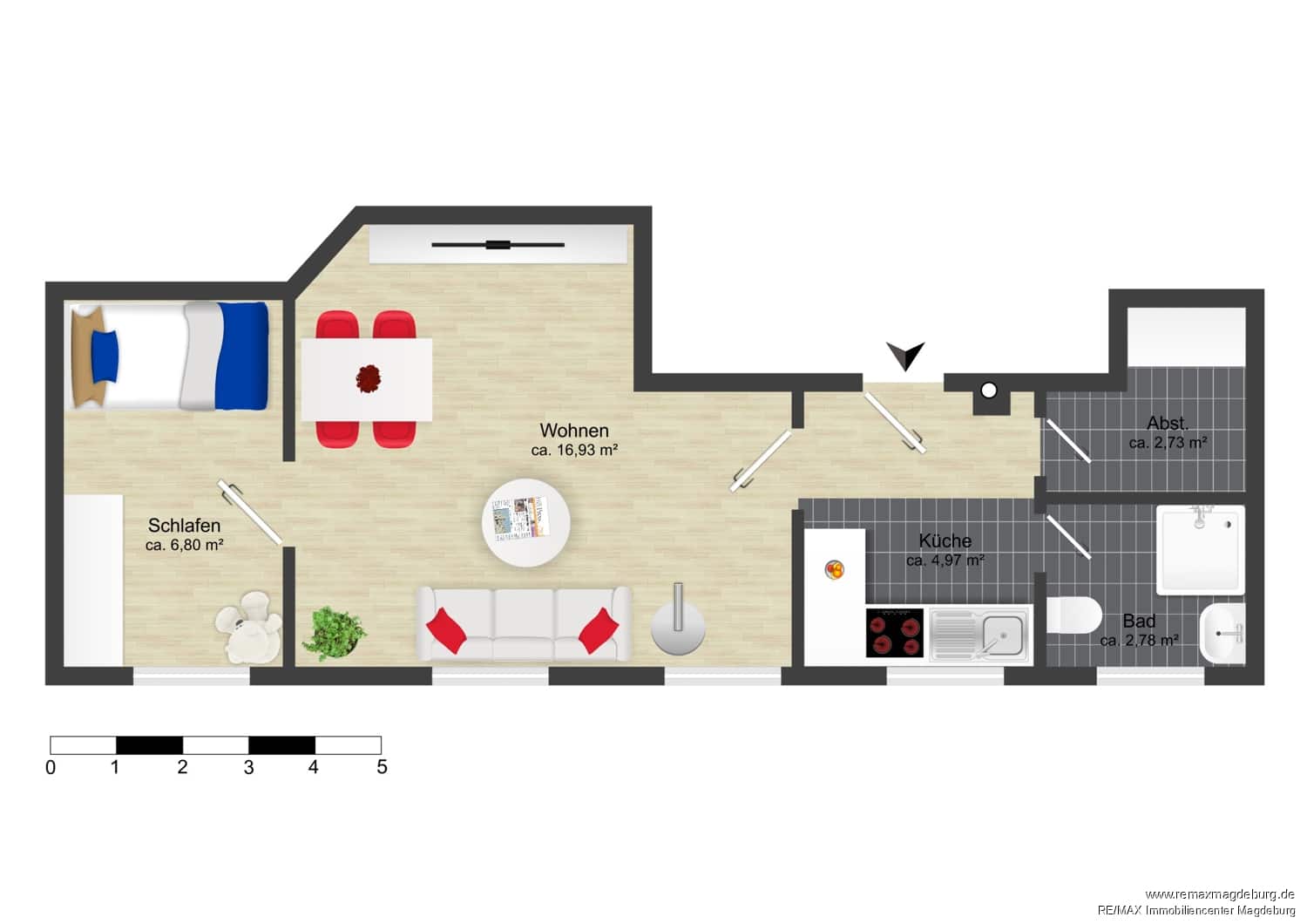 In sehr guter Lage, erwartet Sie hier eine ca. 33 m² große Eigentumswohnung im 1. Obergeschoss in einem Wohn- und Geschäftshausaniert im Zentrum von Haldensleben.