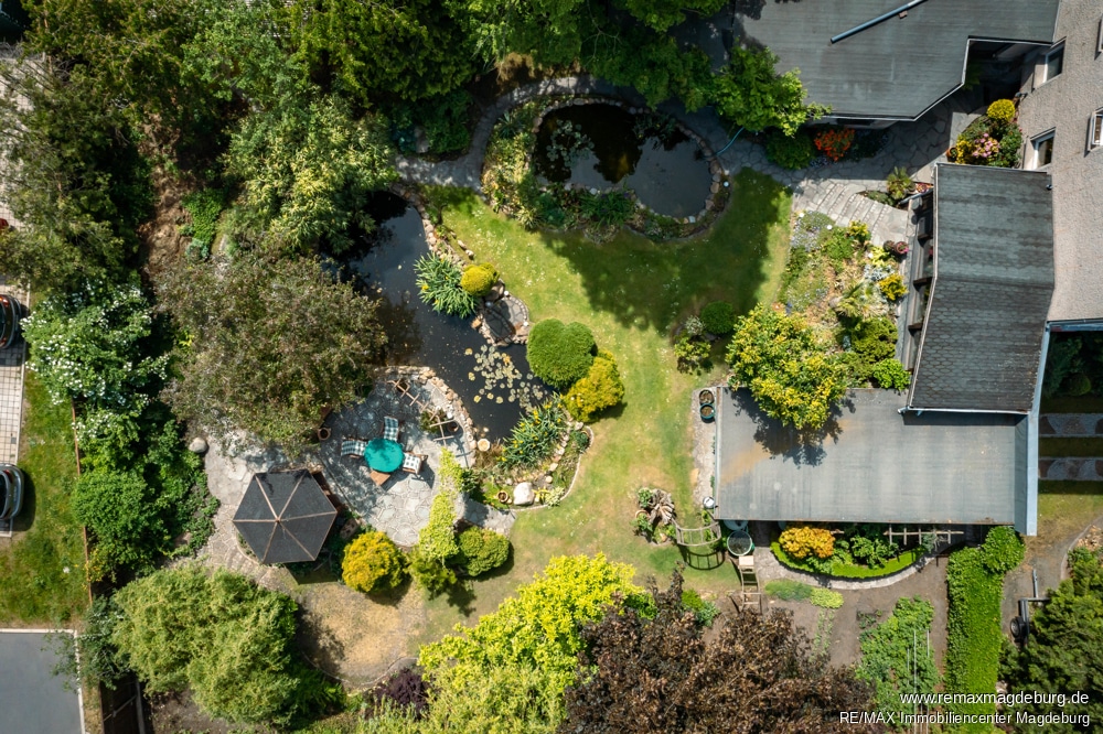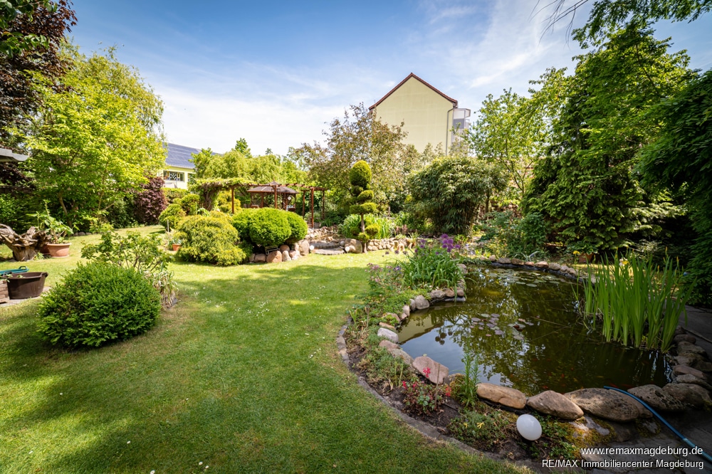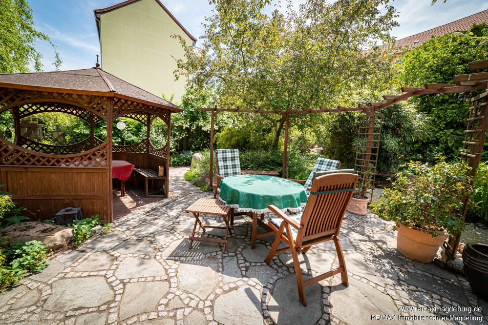 Ergänzt wird das freiheitliche Platzempfinden durch eine gemütliche Sitzecke mit Pavillion. In der warmen Jahreszeit können Sie hier gemeinsam mit Freunden und der Familie angenehme Sonnenstunden auskosten, während Ihre Kinder auf der Wiese spielen. Für Gartengeräte, Fahrräder und Werkzeuge steht ein Gartenhaus bereit. Perfekt abgerundet wird das Kaufangebot durch zwei massive Garagen.
