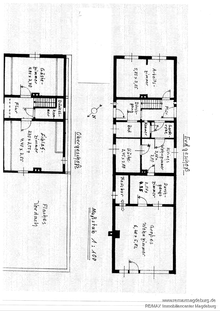 Im Erdgeschoss, befinden sich 4 Zimmer, Küche, Bad, Flur sowie 3 kleinere Räumlichkeiten. Im Ober-bzw. Dachgeschoss, befinden sich weitere 2 Schlafzimmer, Flur und Abstellraum.