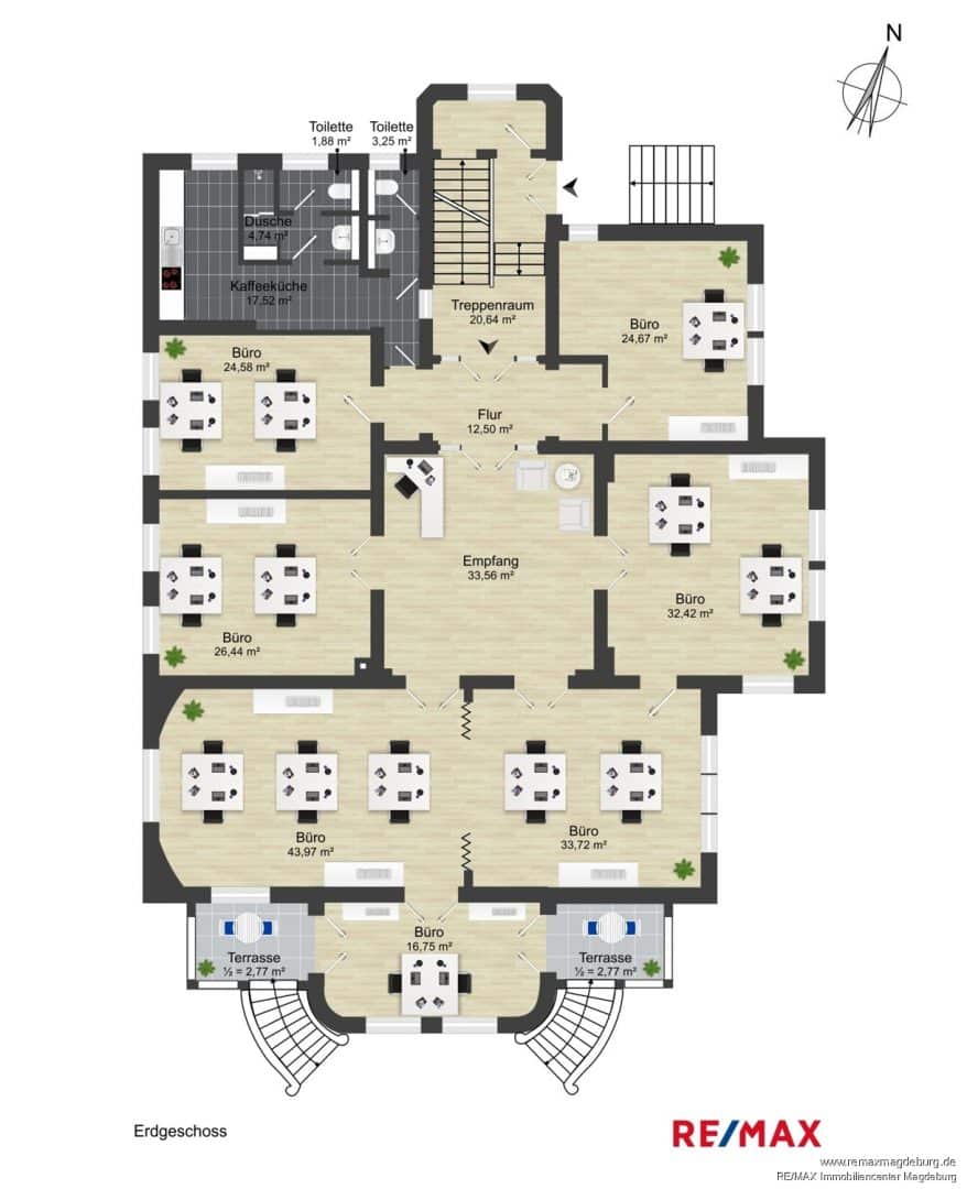 - Erdgeschoss: ca. 282 m² Büro- und Nutzfläche