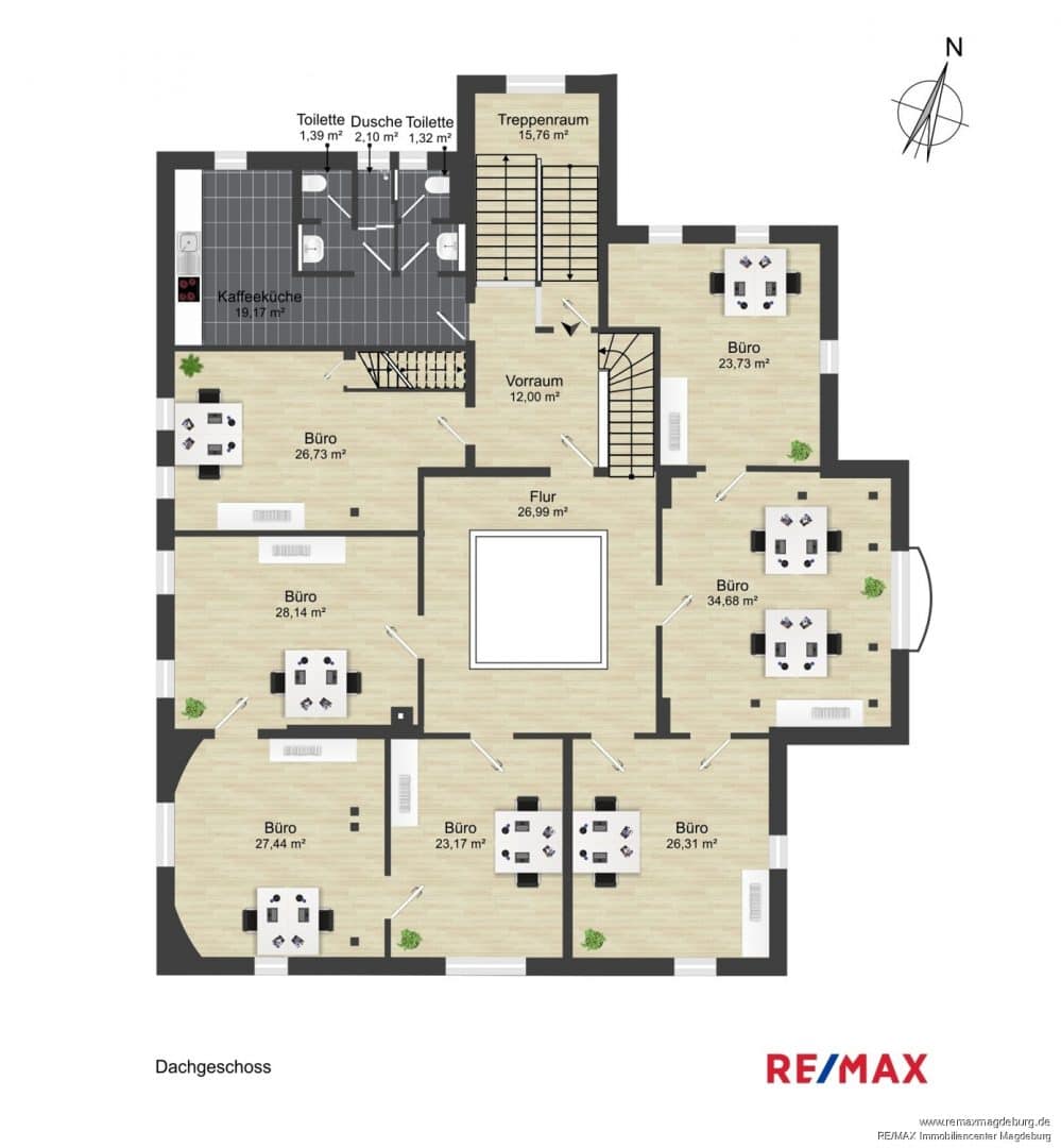 - Dachgeschoss: ca. 253 m² Büro- und Nutzfläche