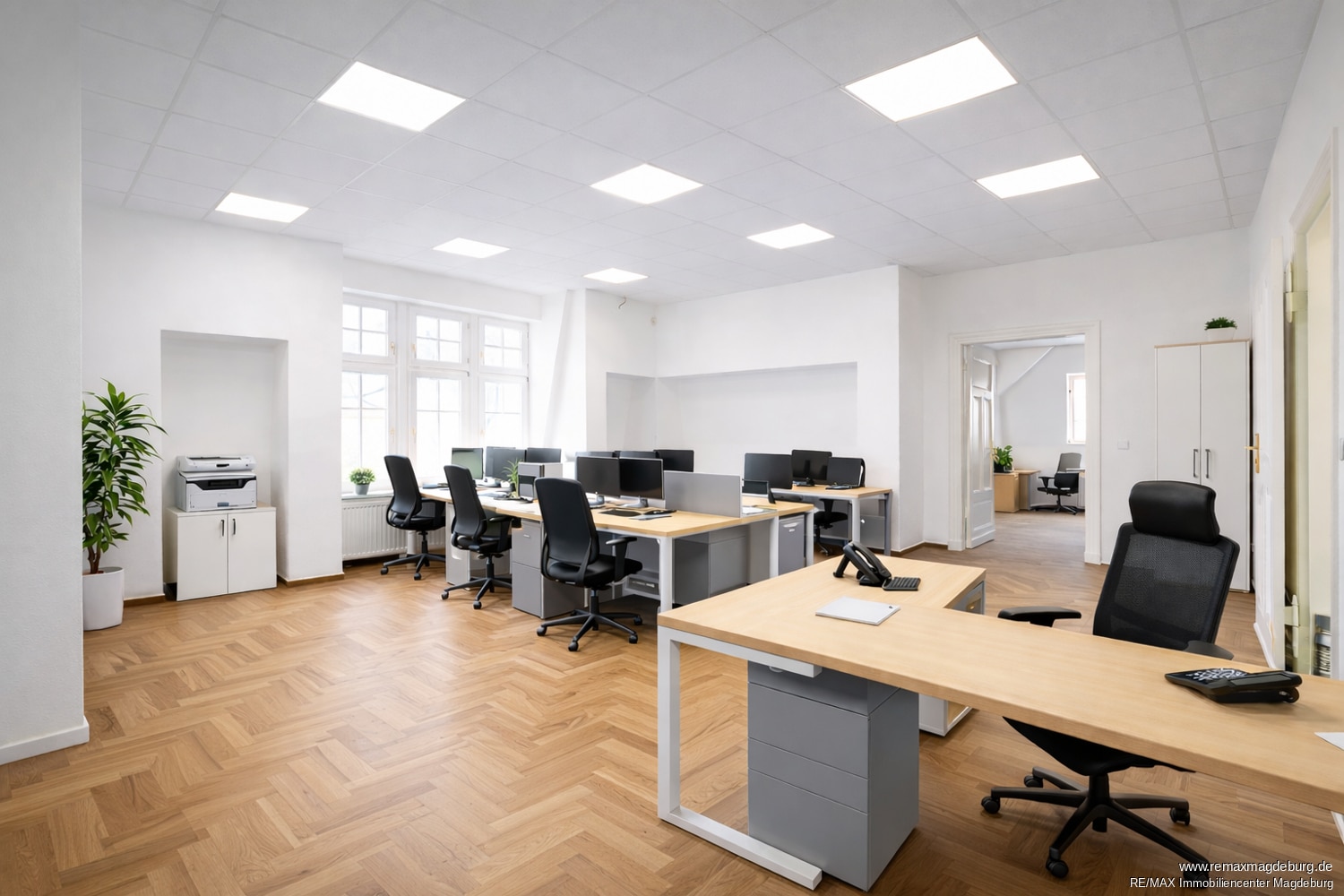Die Immobilie verfügt über eine Gesamtmietfläche von ca. 1.090 m², verteilt auf mehrere Ebenen, und kann entweder komplett oder in einzelnen Flächen angemietet werden. Die Raumstruktur ermöglicht vielfältige Nutzungskonzepte – von klassischen Büronutzungen über Kanzleien, Agenturen oder repräsentative Praxisflächen.