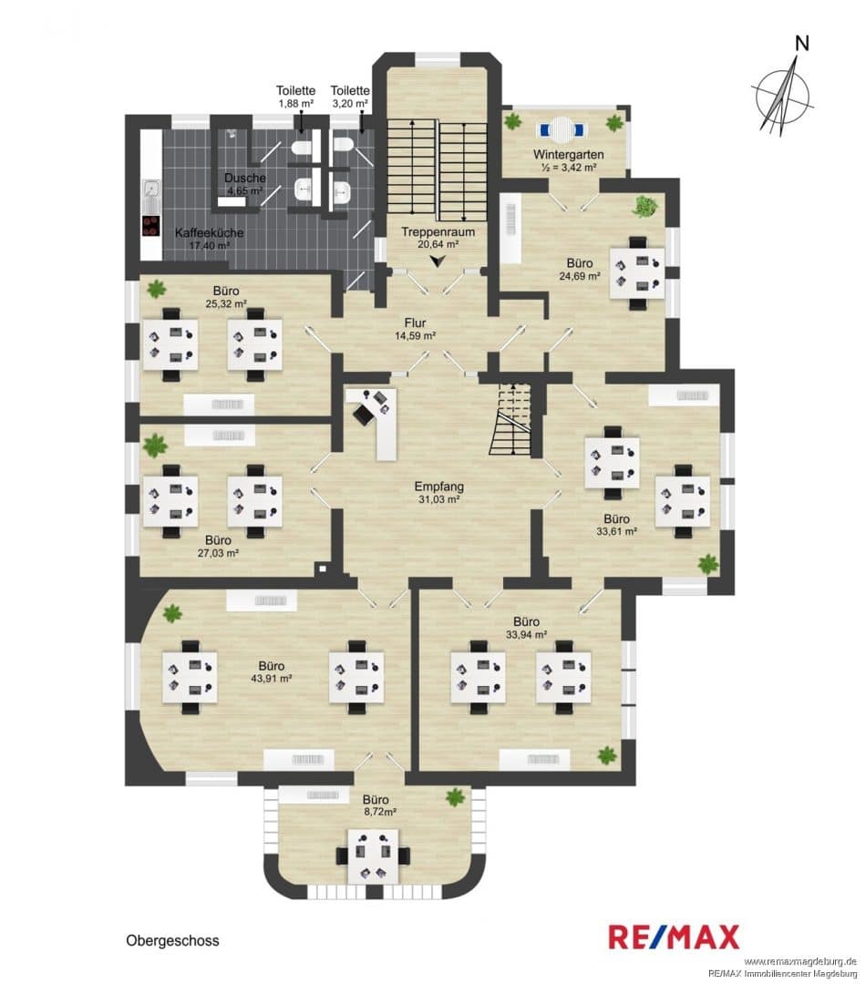 - Obergeschoss: ca. 273 m² Büro- und Nutzfläche