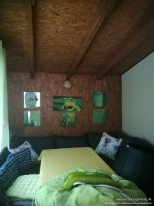 Dazu gehört noch ein ausgebautes Gartenhaus mit Kamin.
