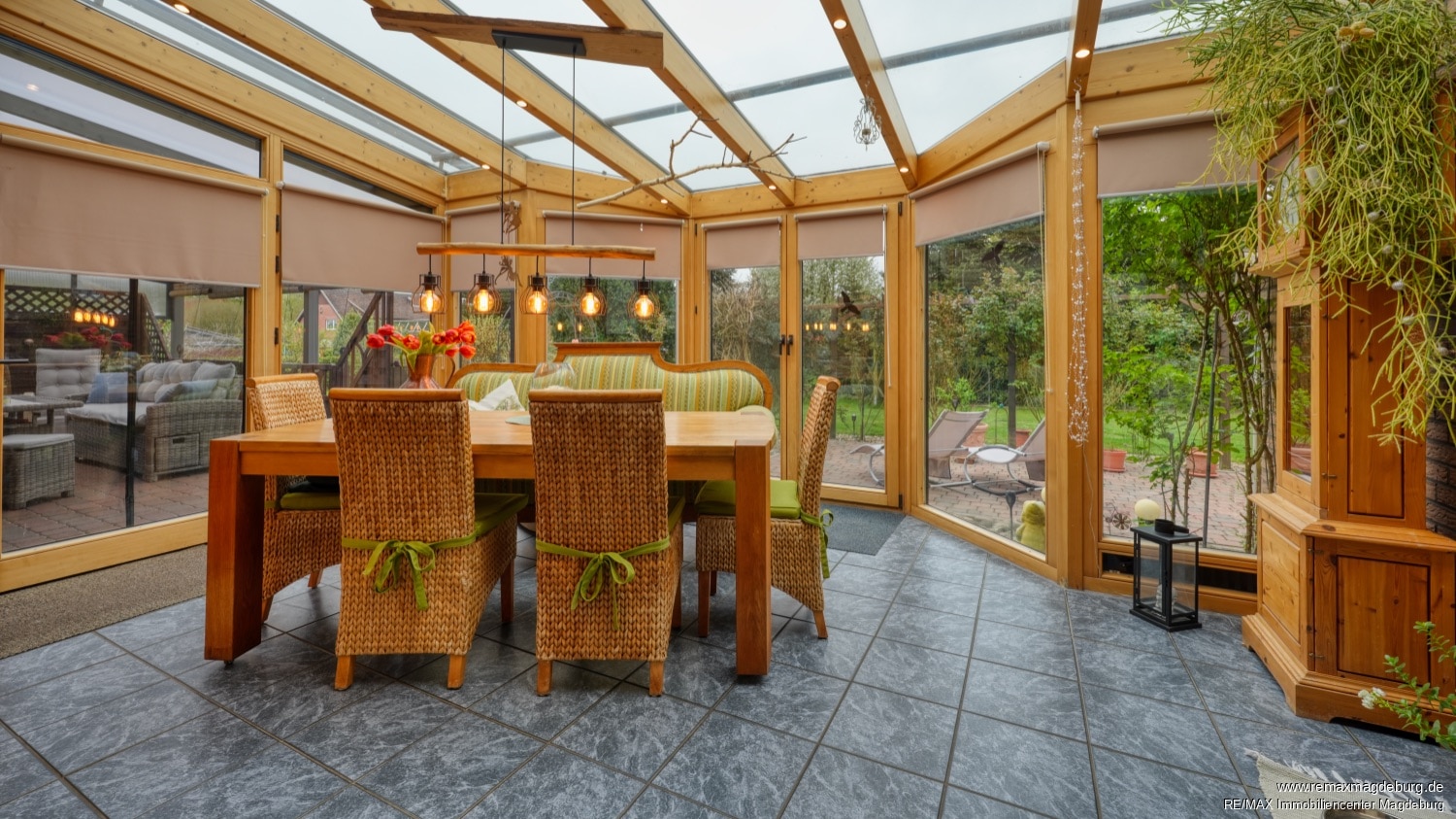 Eingangsbereich, Diele, Duschbad, Gäste-WC, Schlafzimmer, Büro, Gästezimmer, Wohnzimmer, Wintergarten, Küche, Hauswirtschaftsraum.