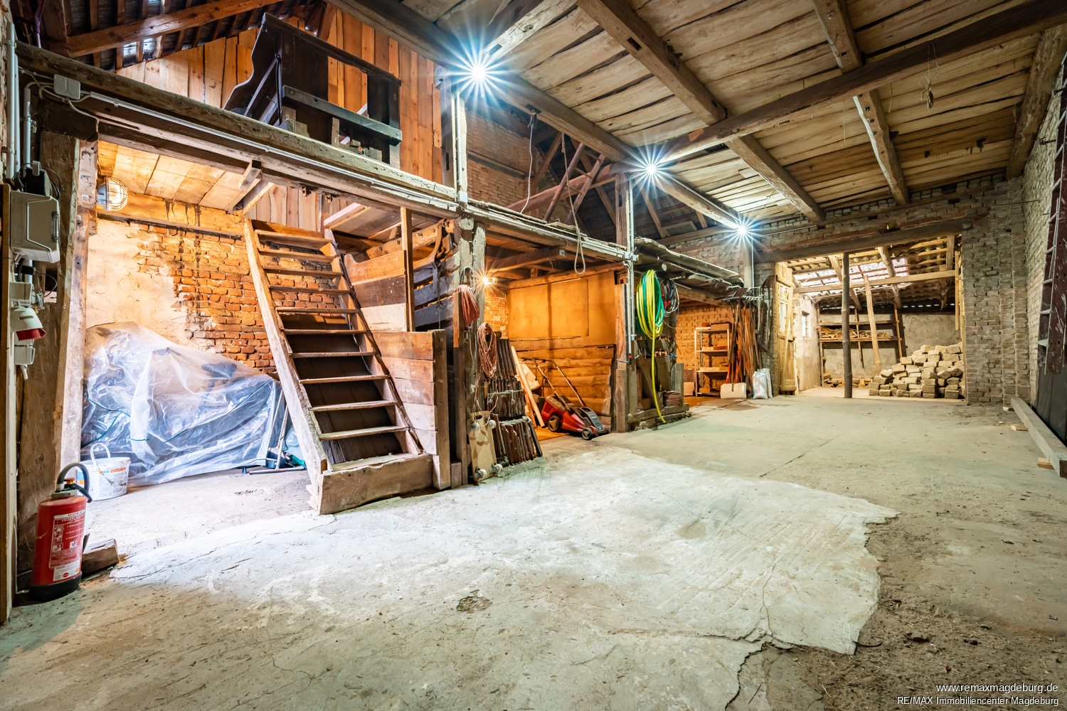 Auf dem ca. 640 m² großen Grundstück befindet sich neben dem Wohnhaus eine großzügige Scheune mit etwa 100 m² Nutzfläche. Diese eignet sich ideal als Werkstatt, Lagerfläche oder für handwerkliche und kreative Projekte. Ein Carport ergänzt das Angebot und bietet einen geschützten Stellplatz für Ihr Fahrzeug.