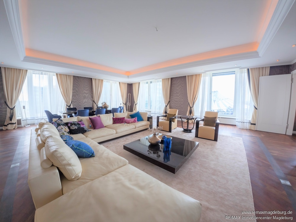 Diese luxuriöse und exklusive Suite, mit Blick über die Dächer von Berlin, befindet sich in dem 2005 erbauten Luxuskomplex direkt am Potsdamer Platz. Das im Gebäude liegende 5 Sterne Ritz-Carlton Hotel überzeugt mit einem First Class Service, welcher Ihnen als Bewohner der Suite immer zur Verfügung steht.