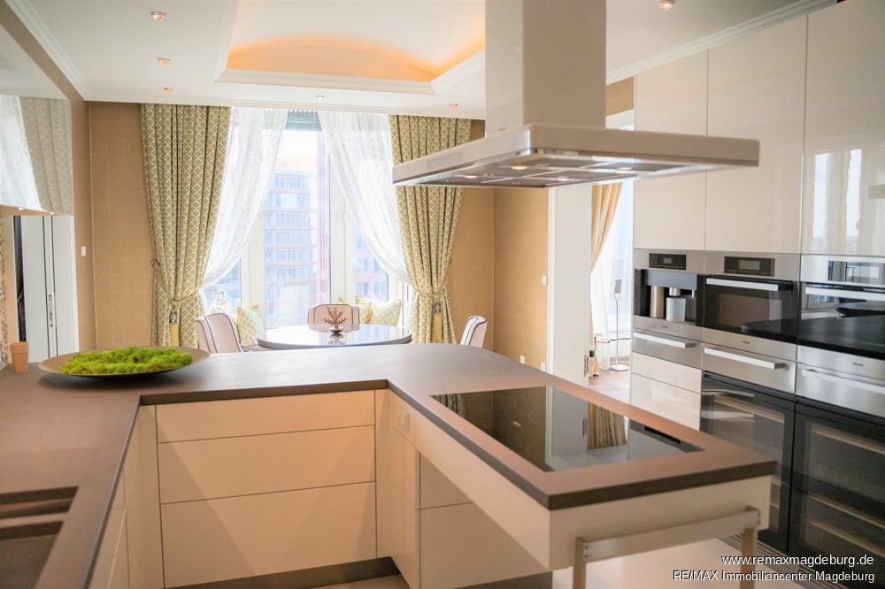 Ein weiterer Höhepunkt stellt die neuwertige Luxusküche dar, ausgestattet mit hochwertigen Geräten von Miele & Gaggenau. Die Küche ist ein Unikat und wurde von Schreinerhand gefertigt.