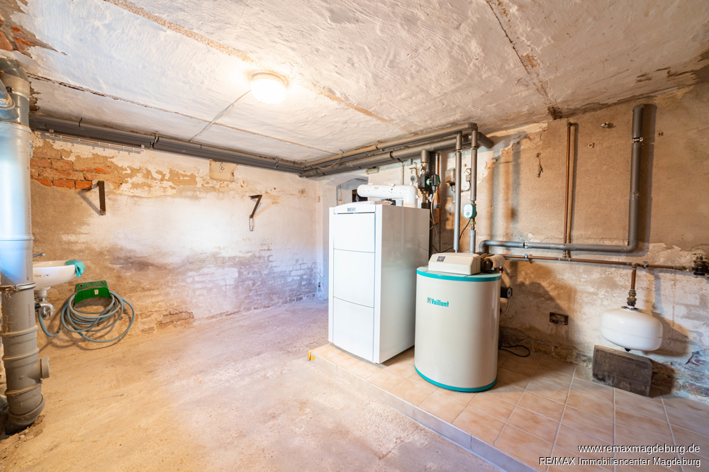 Die volle Unterkellerung bietet genügend Stauraum und Abstellfläche der vielen Großen und Kleinen Dinge des Alltags. Eine im Jahr 2021 neu installierte Gasbrennwerttherme mit Warmwasserboiler ist hier technisch installiert.