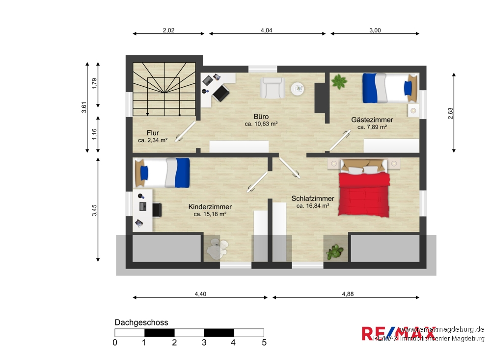 Über eine Treppe im Flur erreichen Sie das Dachgeschoss des Hauses, welches über vier weitere Zimmer verfügt. Die nach Bedarf als Kinder,- Arbeits- oder auch als Gästezimmer zu gestalten sind. Ein zusätzliches Badezimmer ließe sich nachträglich auch realisieren.