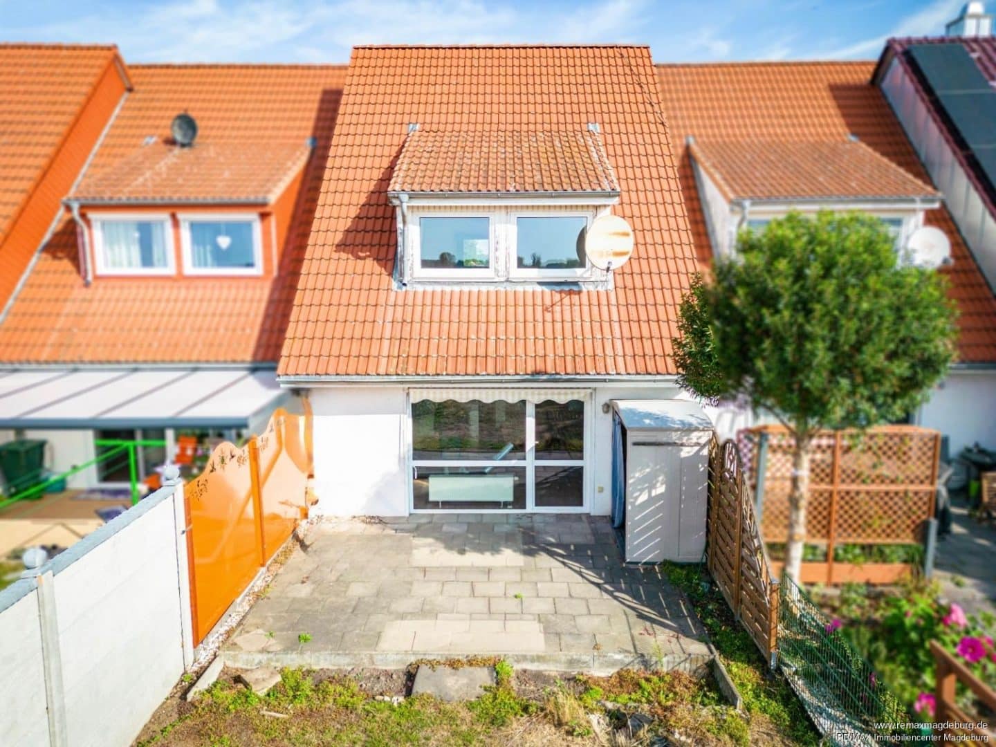 Der pflegeleichte Außenbereich bietet Raum für Gartenaktivitäten oder einen kleinen Spielbereich. Ein direkt am Haus gelegener Carport ergänzt das Angebot und ermöglicht auch bei schlechtem Wetter komfortables Parken.