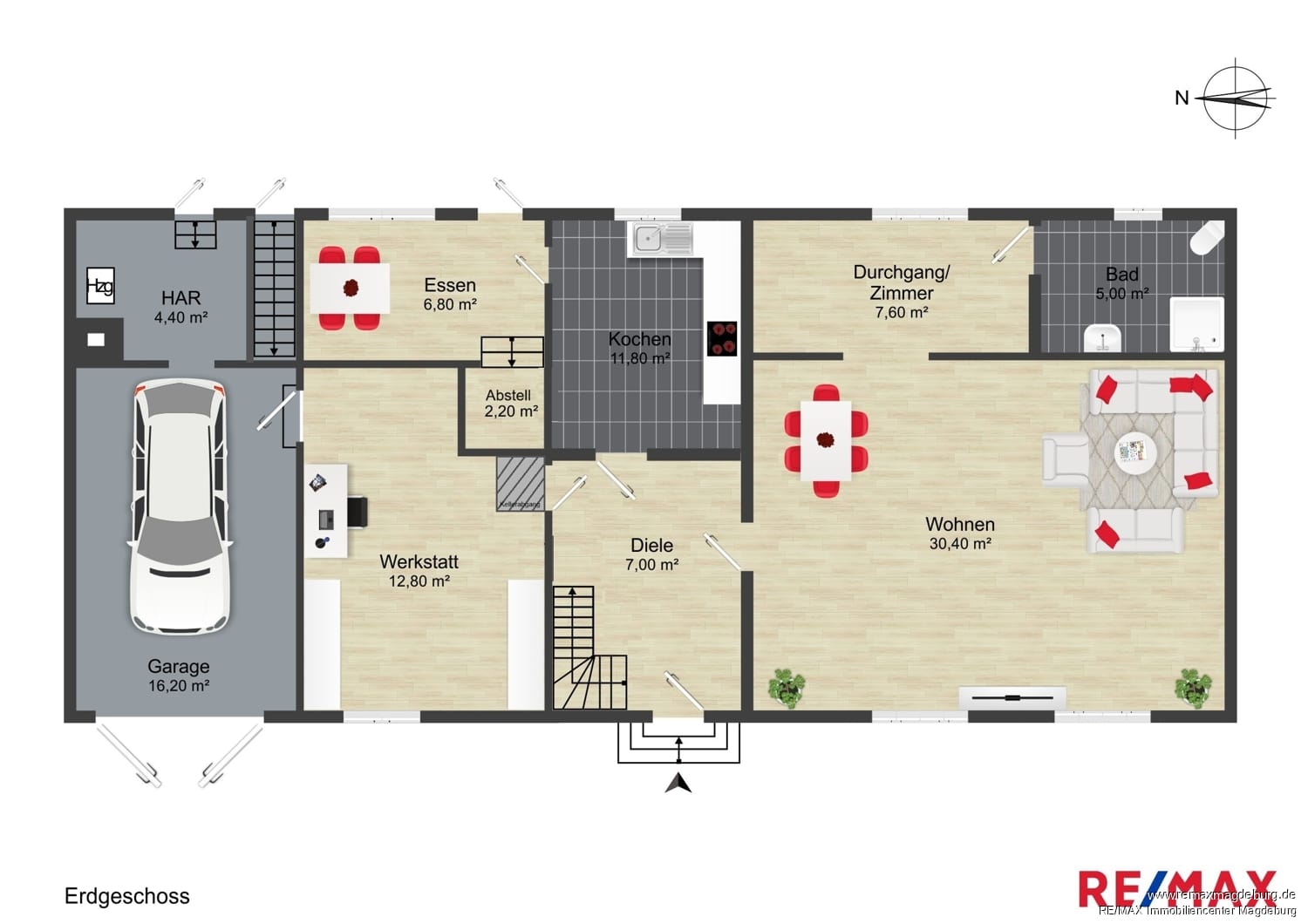 Zusätzlichen Platz schaffen der Heizungsraum, eine Garage sowie eine praktische Werkstatt. Darüber hinaus verfügt das Nebengelass über zwei Abstellräume, die für Hobbys oder zur Lagerung genutzt werden können. Der Außenbereich lädt mit einer überdachten Terrasse und einer gepflegten Grünfläche zum Entspannen ein. Abgerundet wird das Angebot durch ein modernes Balkonkraftwerk, das für eine nachhaltige Energieversorgung sorgt.