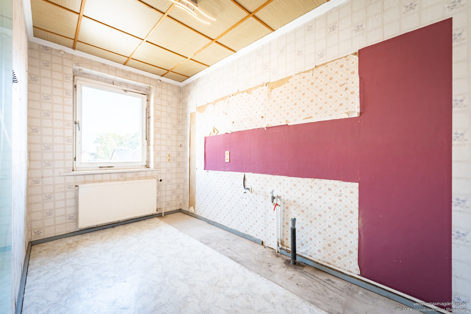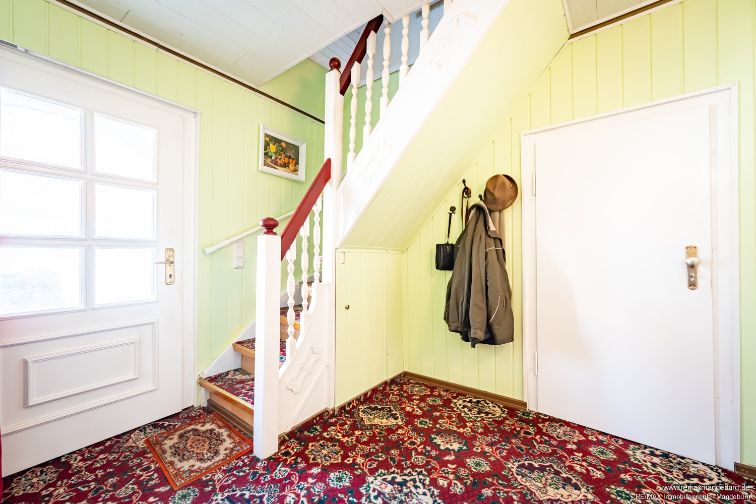 Im Erdgeschoss des Haupthauses betreten Sie zunächst die Diele, die neben dem Zugang zum Wohnzimmer und einem Durchgangszimmer auch den Aufgang in das Dachgeschoss sowie den Zugang in den Keller bietet. Ein Tageslichtbad mit Dusche sowie die Küche runden das Erdgeschoss ab. Von der Küche aus gelangen Sie direkt in das Esszimmer, das mit einem Ausgang in den Innenhof punktet und durch einen angrenzenden Abstellraum ergänzt wird.