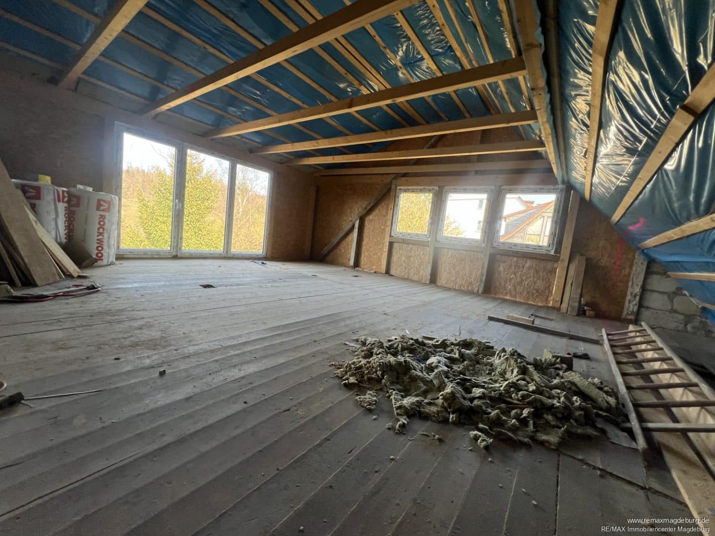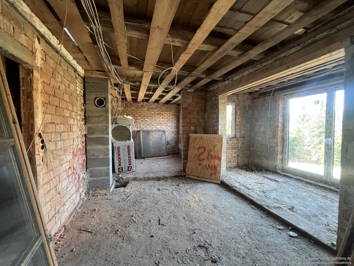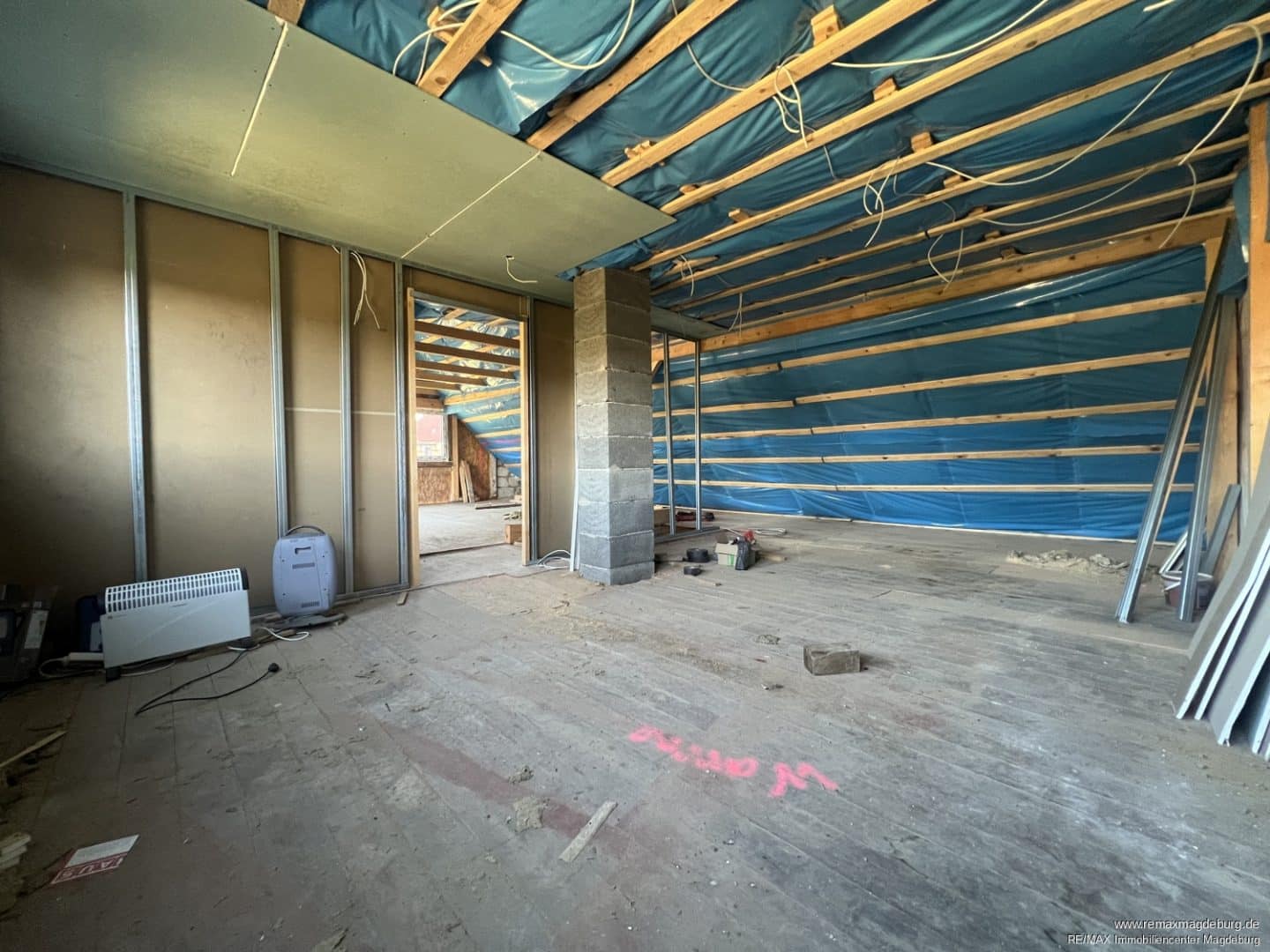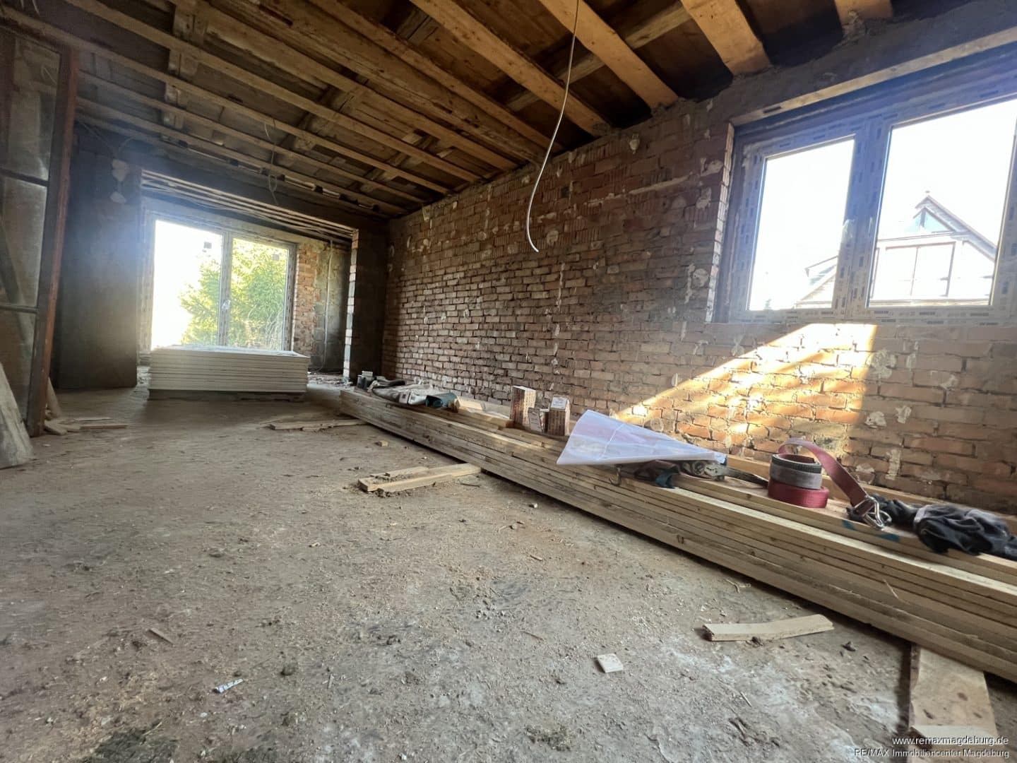 Bereits wichtige Baumaterialien wurden für Sie bereitgestellt, um den Umbau zügig und effizient voranzutreiben. So sind Trockenbau, Dämmmaterial, neue Fenster und moderne Terrassentüren bereits eingebaut. Darüber hinaus liegt das Material für eine stilvolle Harzer Holzvertäfelung für die Außenfassade bereit, was dem Haus eine besondere, natürliche Optik verleiht.