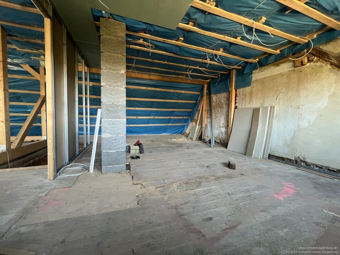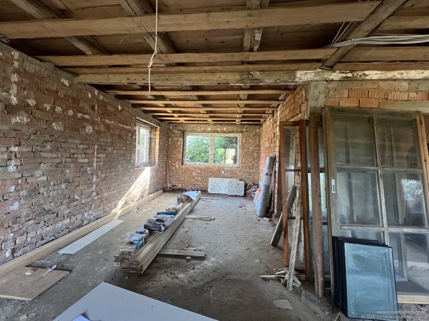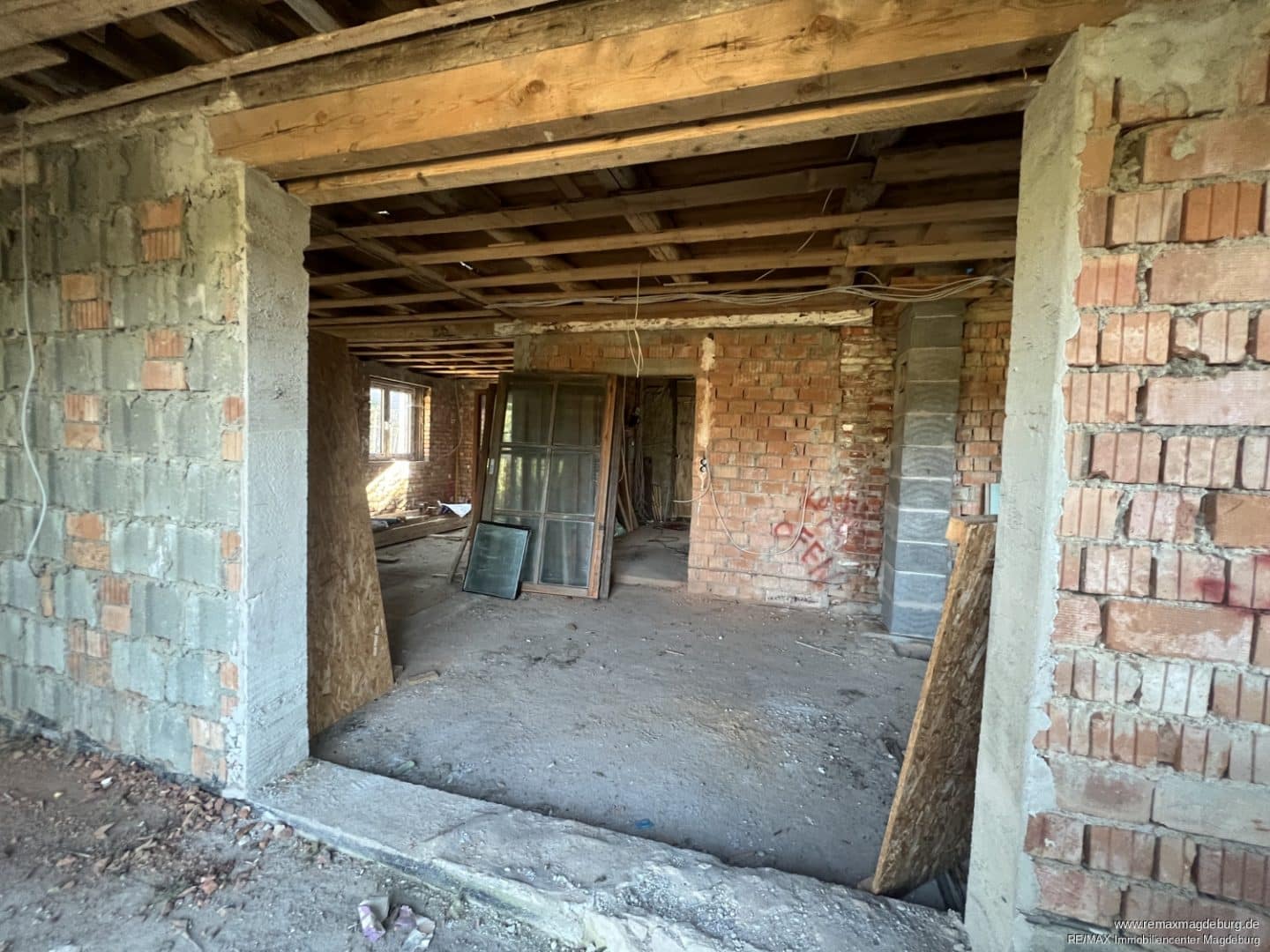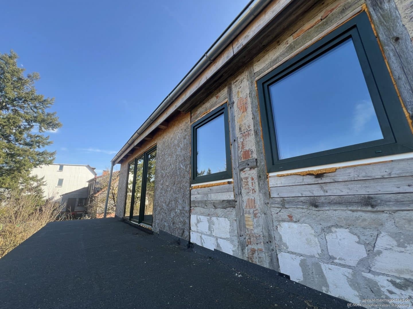 Bereits wichtige Baumaterialien wurden für Sie bereitgestellt, um den Umbau zügig und effizient voranzutreiben. So sind Trockenbau, Dämmmaterial, neue Fenster und moderne Terrassentüren bereits eingebaut. Darüber hinaus liegt das Material für eine stilvolle Harzer Holzvertäfelung für die Außenfassade bereit, was dem Haus eine besondere, natürliche Optik verleiht.