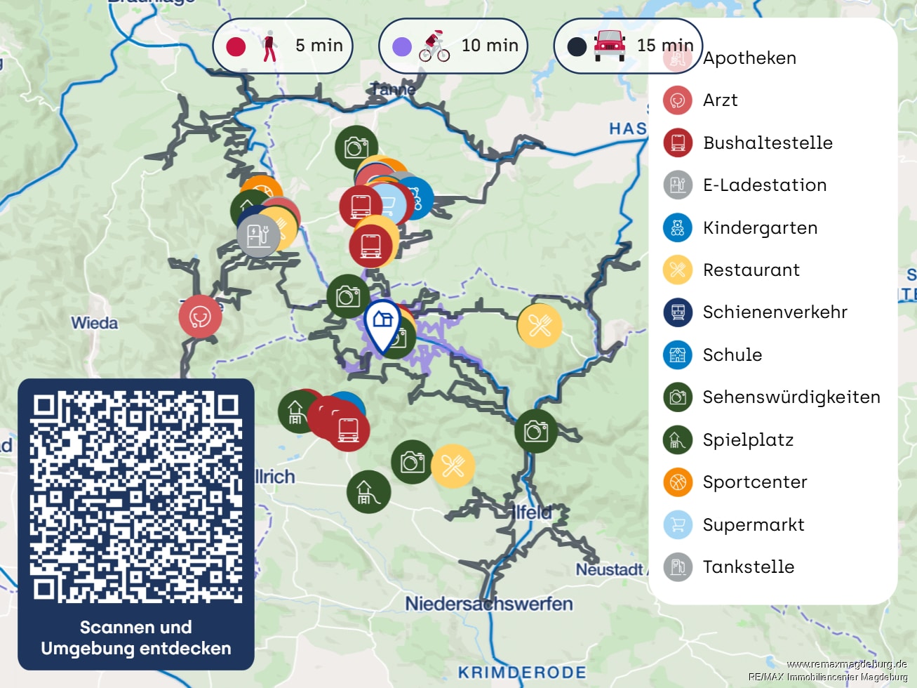 Die Anbindung an den internationalen Flughafen Erfurt-Weimar ist mit einer Entfernung von etwa 120 Kilometern gegeben, was für Reisende eine bequeme Erreichbarkeit bedeutet. Die Autobahn A38 ist in ca. 30 Kilometern Entfernung schnell zu erreichen und bietet eine hervorragende Verbindung zu umliegenden Städten. Die Nähe zu öffentlichen Verkehrsmitteln wird durch die Bushaltestelle in der Nähe unterstrichen, die eine flexible Mobilität gewährleistet.
