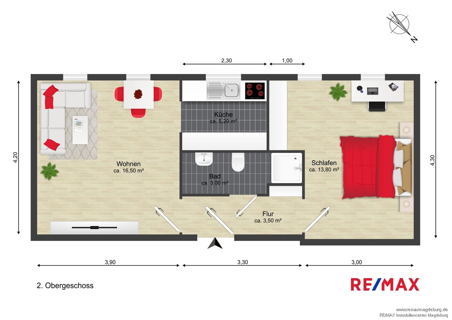 Der lichtdurchflutete Wohnbereich schafft eine einladende Atmosphäre. Das Schlafzimmer bietet ausreichend Platz und einen angenehmen Rückzugsort. Die Küche ist mit einer Einbauküche ausgestattet und bietet ideale Voraussetzungen für gemütliche Kochabende. Das Badezimmer ist mit einer Dusche ausgestattet und bietet somit zusätzlichen Komfort für erholsame Stunden.
