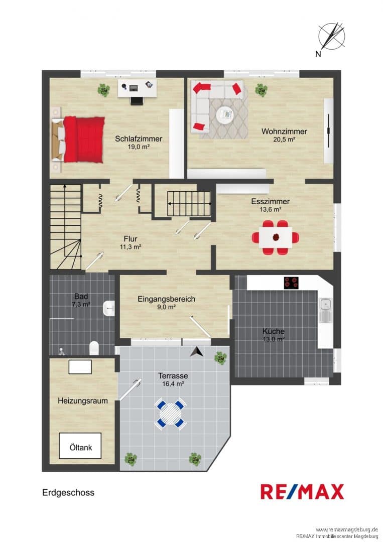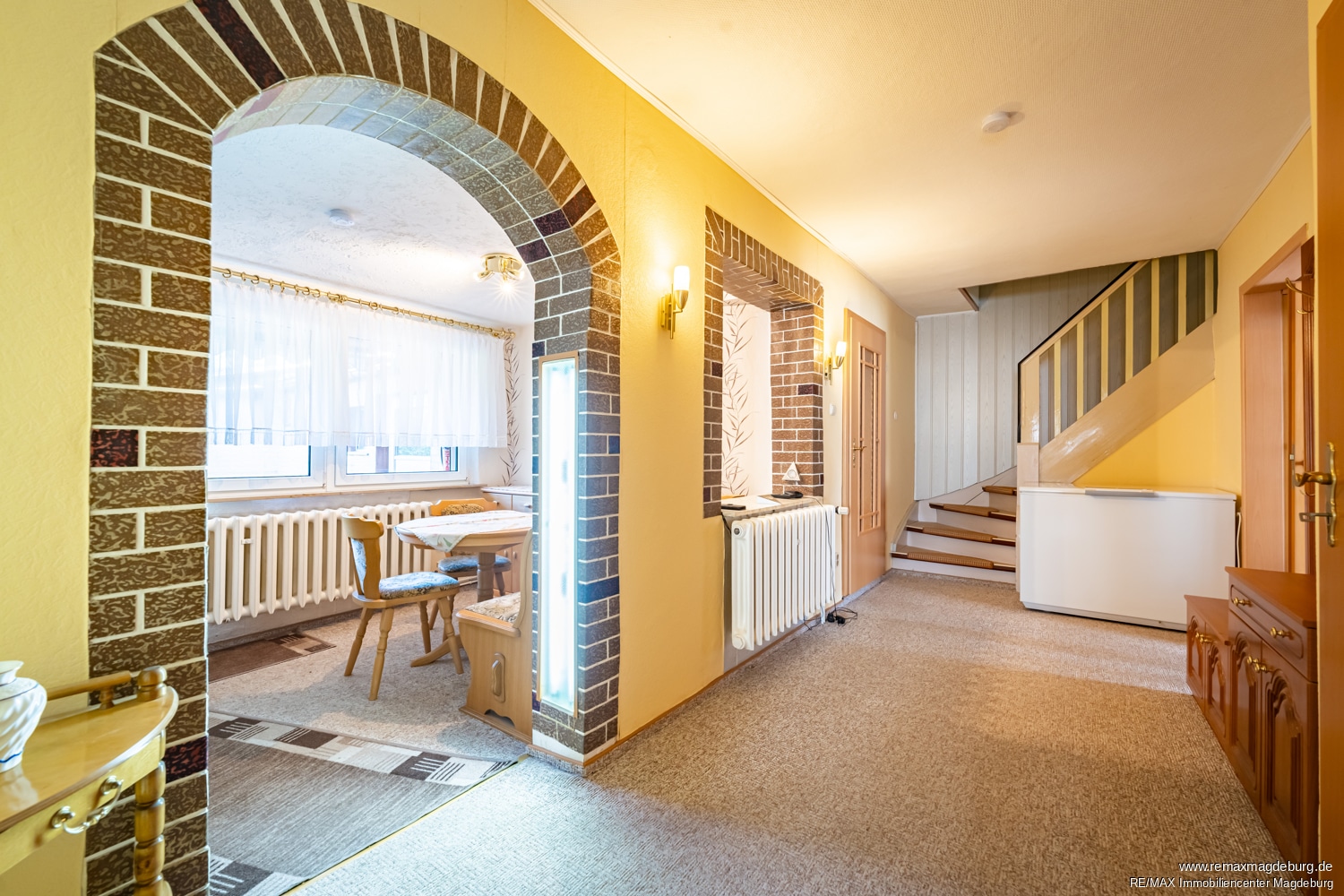 Beim Betreten des Hauses werden Sie von einem großzügigen und einladenden Eingangsbereich empfangen, der nicht nur viel Platz für eine Garderobe, sondern auch die Möglichkeit für eine kleine Sitzecke bietet. Von hier aus gelangen Sie in den zentralen Flur, über den auch zwei separate Kellerabteile erreichbar sind.