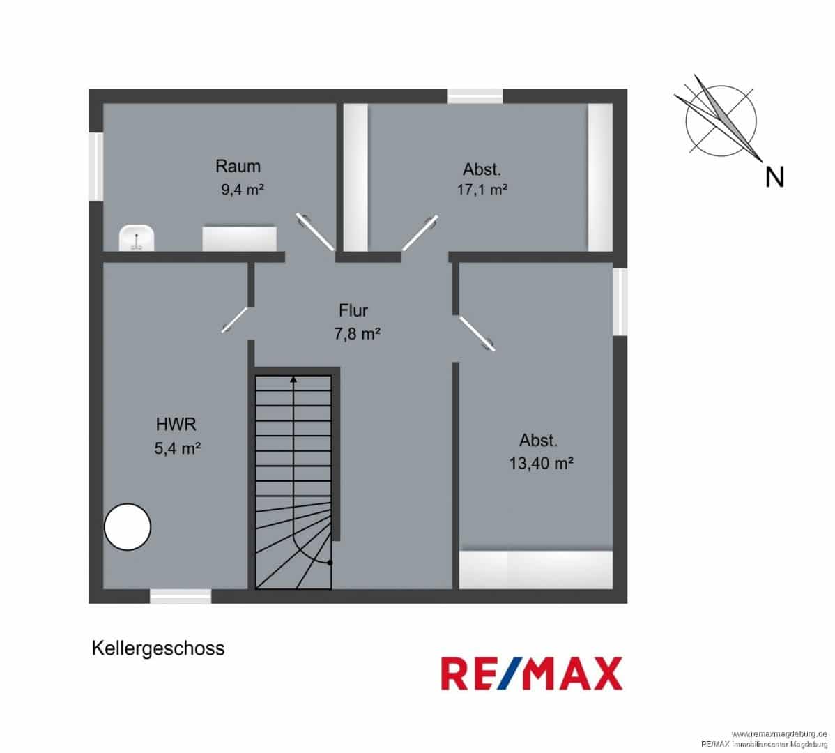 Vom Flur im Erdgeschoss besteht ein direkter Zugang zum Keller. Dort stehen ein Hausanschlussraum sowie weitere Abstell- und Lagerräume zur Verfügung, die zusätzlichen Nutzraum bieten.