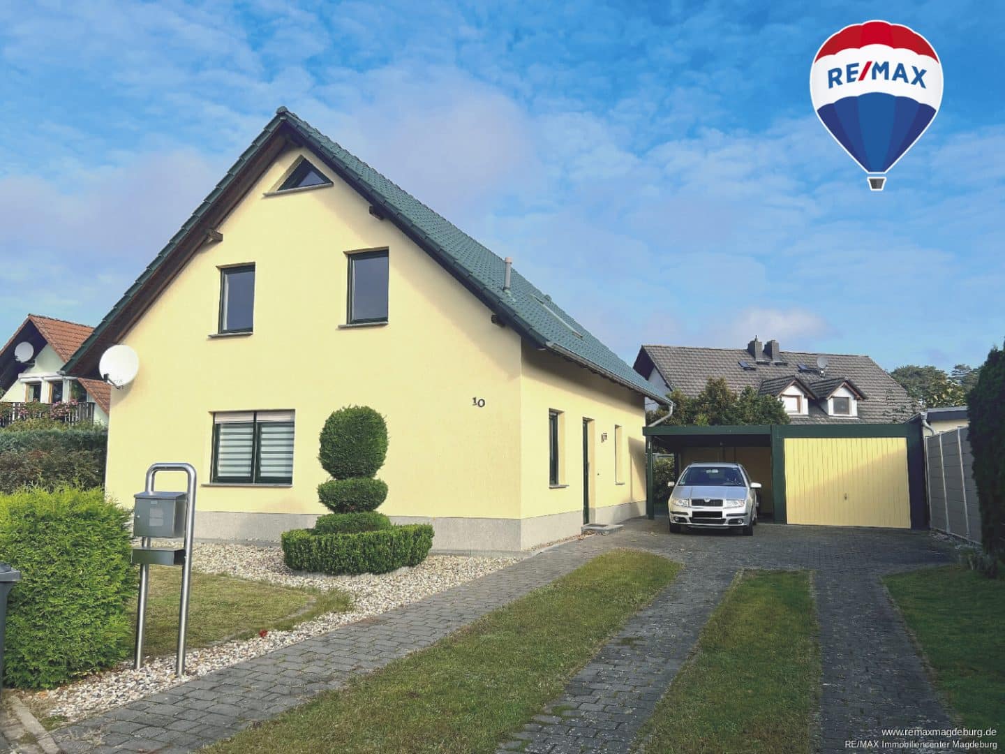 Eine Garage, ein Carport und weitere Außenstellplätze ergänzen das Mietangebot.