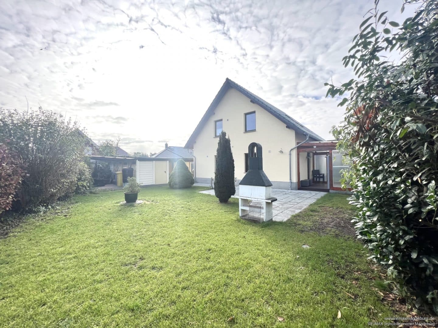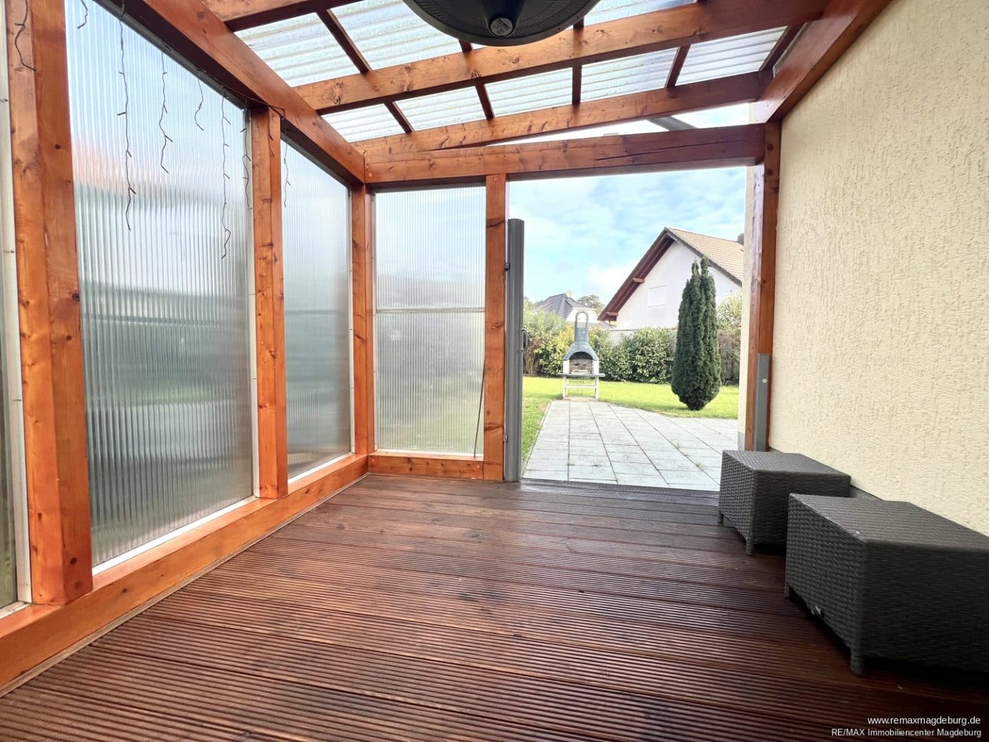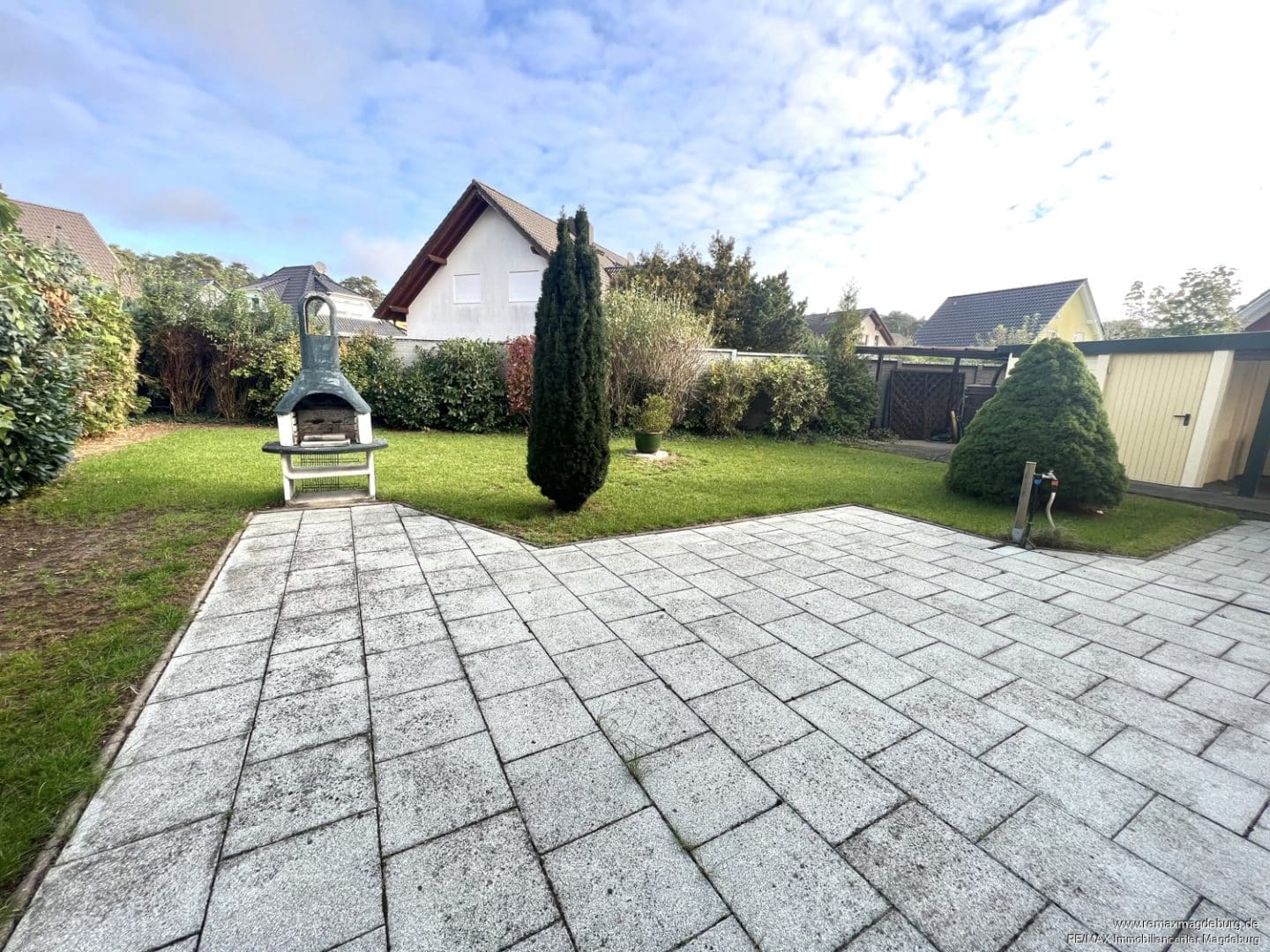Für die Sonnenstunden steht Ihnen eine zweite, offene Außenterrasse mit Grillstelle und Außenwasserhahn angrenzend zum begrünten Garten zur Verfügung.