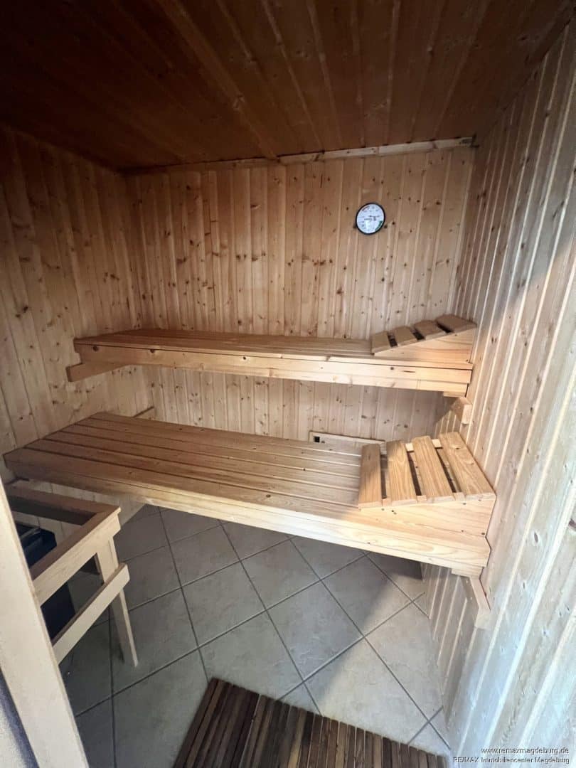 Ein besonderes Highlight des Mietangebots ist der Wellnessraum mit Sauna und Dusche, in dem Sie nach einem langen Arbeitstag zur Ruhe kommen können.