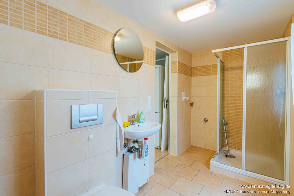 - Tageslichtbad mit Dusche und Eckbadewanne,