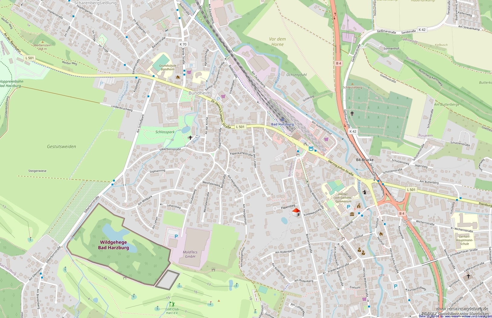Diese Immobilie befindet sich in einer sehr bevorzugten Lage in der Stadtmitte von Bad Harzburg. Von hier aus sind es nur wenige Schritte zu zwei Supermärkten, zahlreichen Geschäften, Apotheken, Ärzten, Restaurants, Cafés und dem Bahnhof.