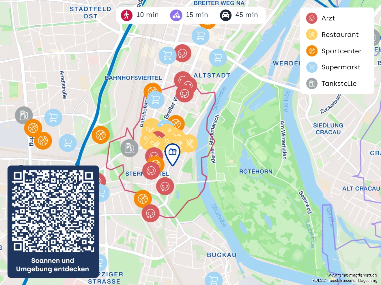 Die Wohnung befindet sich in einer der begehrtesten Lagen Magdeburgs, mitten in der historischen Altstadt. Die Umgebung verbindet traditionelle Architektur mit urbanem Flair, zahlreiche denkmalgeschützte Gebäude prägen das Stadtbild und schaffen ein einzigartiges Wohnambiente.