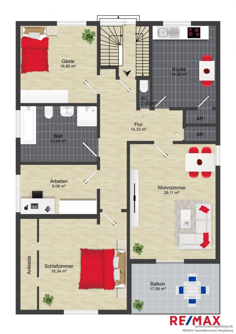 Diese einladende 4-Zimmer-Eigentumswohnung erstreckt sich über circa 120 Quadratmeter Wohnfläche und bietet reichlich Raum für kreative Gestaltung.