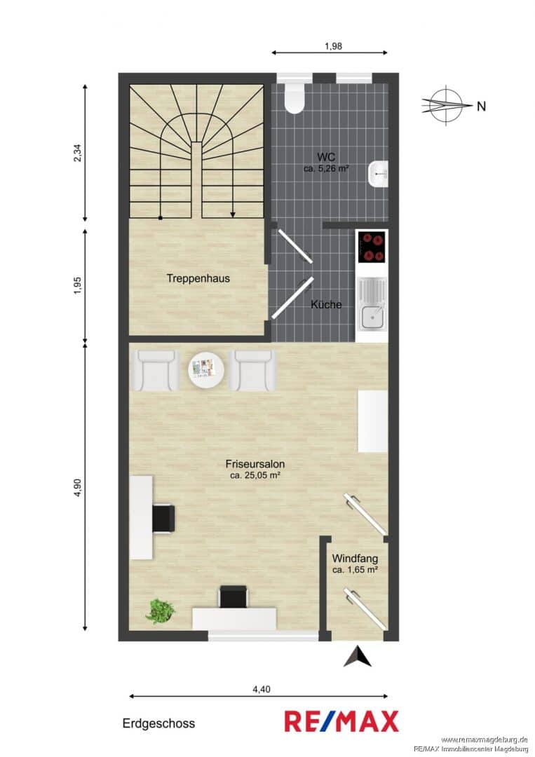 Die erste Einheit mit einer Größe von ca. 32 Quadratmeter ist derzeit an einen Friseursalon vermietet, welcher sich als feste Größe in der Gemeinde etabliert hat.