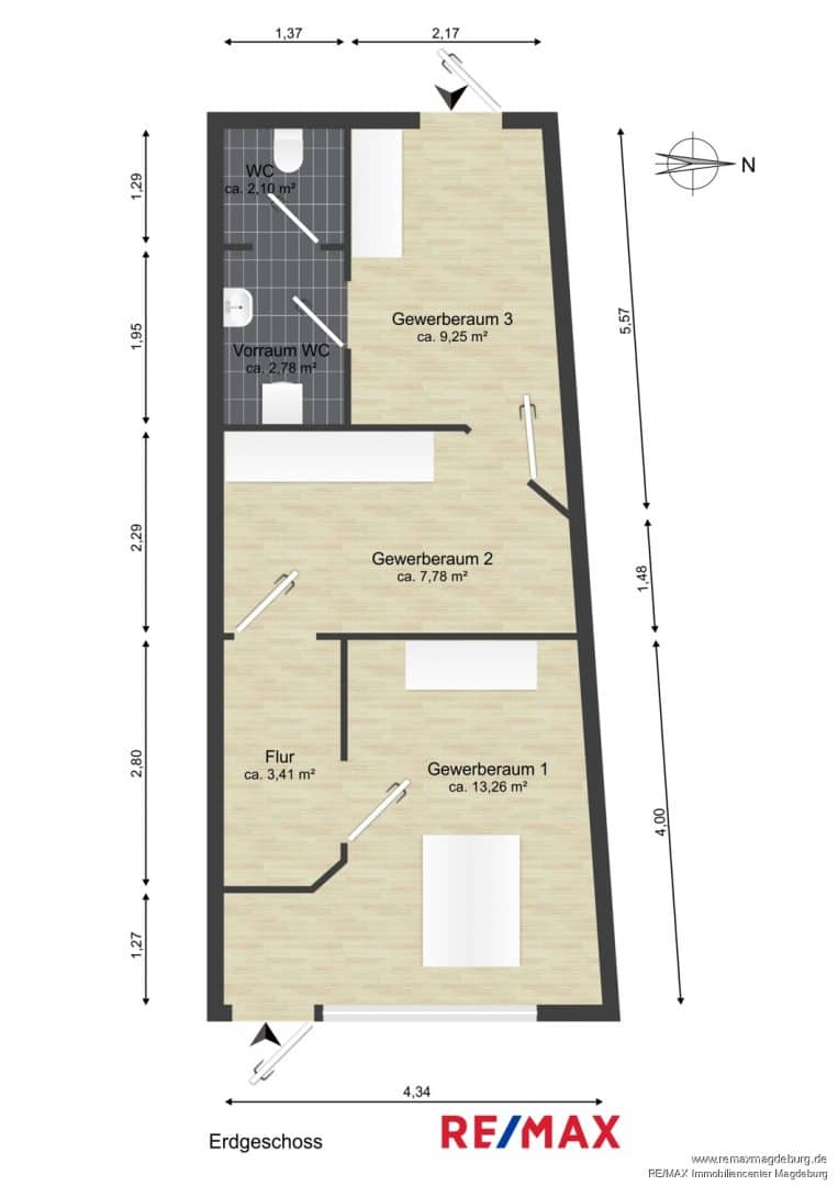 Die Gewerbeeinheiten befinden sich im Erdgeschoss und bieten rollstuhlgerechten Zugang. Für jede Einheit stehen jeweils 2 Stellplätze, exklusiv den jeweiligen Mietern zur Verfügung.
