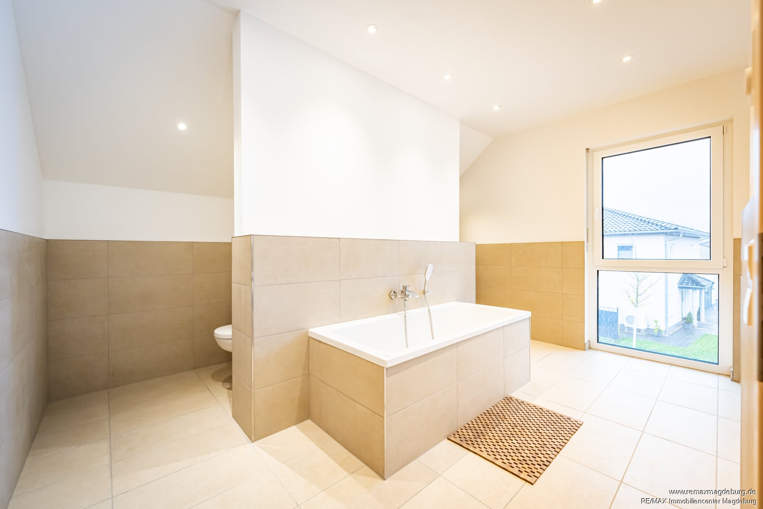 - Tageslichtbad mit Badewanne und ebenerdiger Dusche,