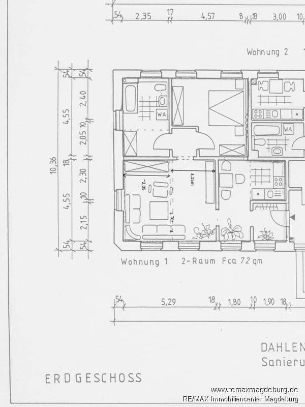 Anhand der Grundrisse (alt + neu), ist zu erkennen, dass vom Wohnzimmer, noch ein zusätzlicher Raum (Trockenbauwand) , für ein helles Kinderzimmer erfolgte. So konnte die reguläre 2-Raum Wohnung in 3 Räumlichkeiten, aufgefächert werden.
