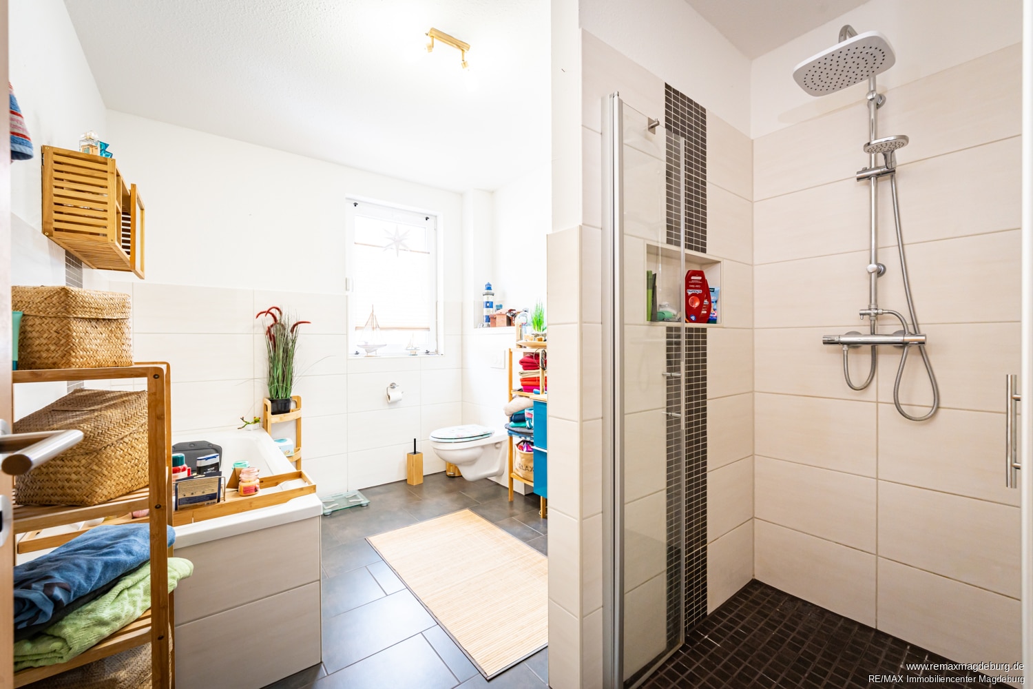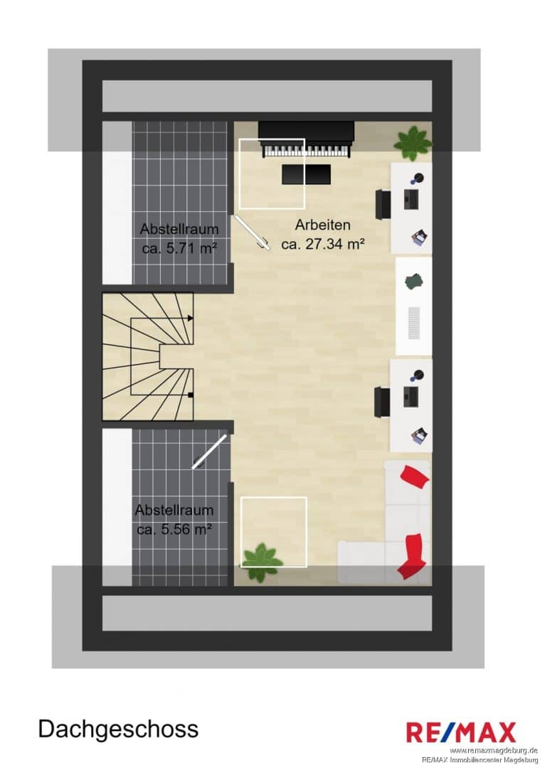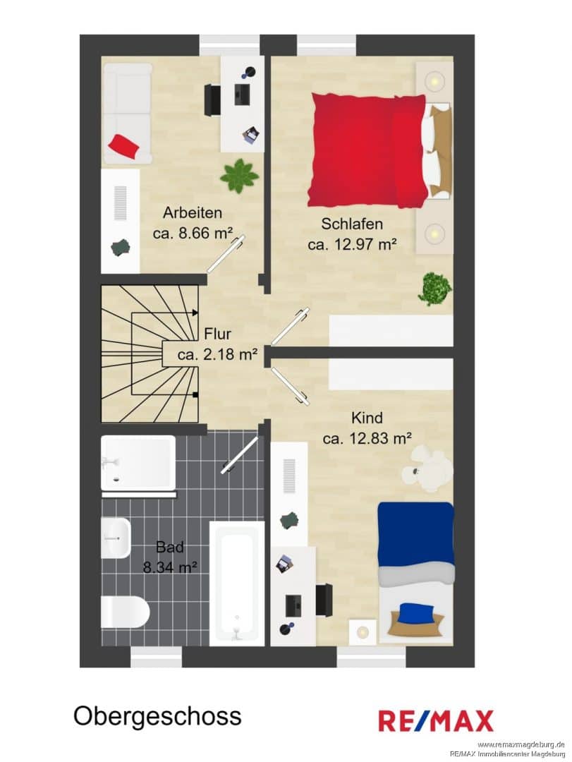 Im Obergeschoss findet jedes Familienmitglied ein eigenen Rückzugsort. Zur Verfügung stehen ein Kinderzimmer, ein Schlafzimmer, sowie ein Zimmer, welches individuell als Kinder- Arbeits- oder Schlafzimmer genutzt werden kann. Das Familien-Badezimmer ausgestattet mit einer Badewanne und einer ebenerdigen Dusche runden das Raumangebot perfekt ab. Noch mehr Wohnraum bietet das Dachgeschoss mit einem weiteren Zimmer, welches als Arbeits-, Schlaf- oder Gästezimmer eingerichtet werden kann. Hier kann durch die Teilung des Zimmers weiterer Wohnraum geschaffen werden. Zwei Abstellräume bieten genügend Platz zum Abstellen und Lagern. Auch der ausgebaute Spitzboden hält genügend Stauraummöglichkeiten bereit.