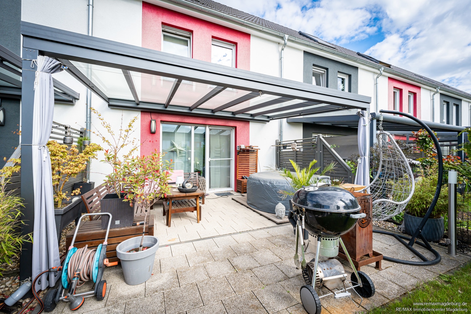 Dieses schön gelegene Reihenmittelhaus bietet Ihnen auf ca. 123 Quadratmetern Wohnfläche höchste Wohnqualität. Ein großer Wohn- und Essbereich ermöglicht Ihnen ein harmonisches Zusammensein und sorgt für ein komfortables und offenes Wohngefühl. Der Kochbereich ist angrenzend zum Wohnbereich gestaltet. Der Tresen bildet eine optische Abgrenzung. Das Erdgeschoss bietet Ihnen weiterhin ein Gäste-WC sowie einen Hauswirtschaftsraum. Für ein lichtdurchflutetes und freundliches Ambiente sorgen hier große Fenster und Türen, die zugleich Zugang zum grünen Garten und der ca. 25 m² großen, überdachten Terrasse bieten.