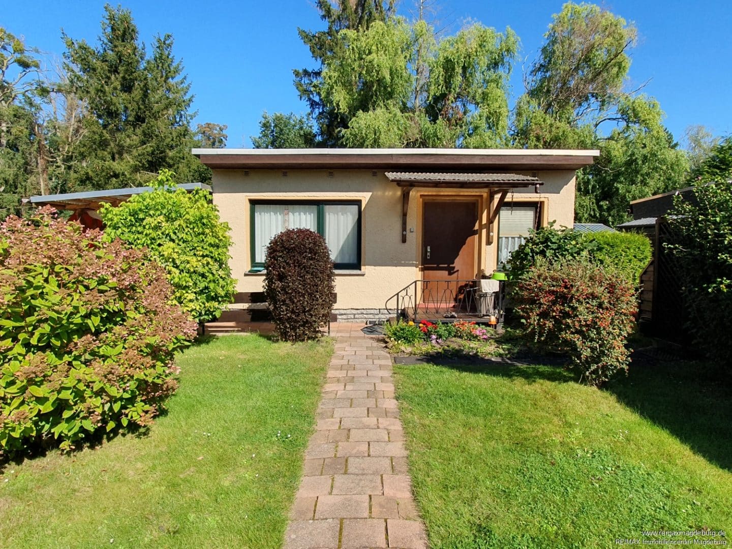 Der ca. 34 m² große Bungalow befindet sich auf einem etwa 300 m² großen idyllischem und ruhigen Pachtgrundstück in Pretzien, welches über einen direkten Seezugang verfügt.