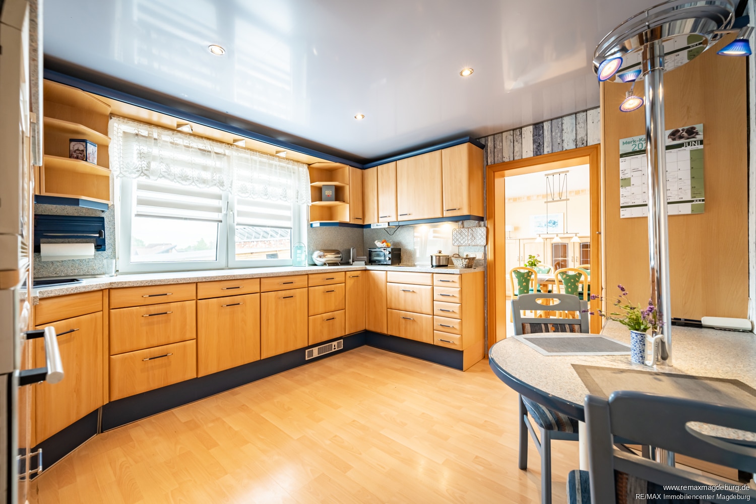 Das Obergeschoss beeindruckt mit einer durchdachten Raumaufteilung und einer hellen, freundlichen Atmosphäre. Ein zentraler Flur verbindet alle Räume und sorgt für kurze Wege im Alltag. Mittelpunkt der Etage ist das großzügige Wohnzimmer, das durch seine offene Gestaltung und große Fensterflächen viel Tageslicht bietet – der perfekte Ort zum Entspannen oder für gesellige Abende. Direkt angrenzend befindet sich die moderne Küche mit ausreichend Platz für kulinarische Aktivitäten und direktem Zugang zum Wohnbereich.